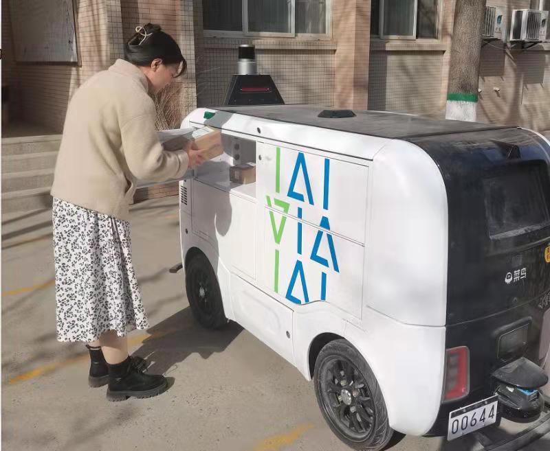 “麻烦借过一下,谢啦!”一个俏皮的声音从背后传来,随即学生们笑着让出道路……它就是快递服务中心的新成员——“小蛮驴”。它外形憨萌,身材娇小,身长2.1米、宽0.9米、高1.2米,车身白色,上面写着“我的天呐!包裹可送到宿舍楼下了”。