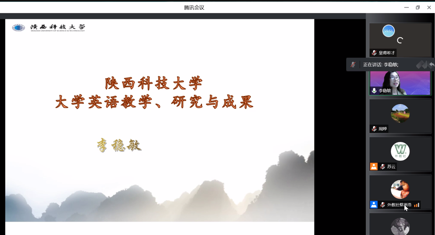 讲座开始,《全新版大学进阶英语(思政智慧版)》的编者之一——冯豫博士讲解了大学英语教学的设计理念,并结合自身教学经验详细介绍了教学理念的具体实施策略。随后,李稳敏教授对德赢官网文理学院外语系做了简要介绍,并从“新文科建设”对外语教学提出的新要求出发,分析了大学英语教学改革的目标,进一步介绍了德赢官网外语系在大学英语教学改革与教学与研究中做出的努力、取得的成果及未来教学改革与教学研究的方向。德赢官网大学英语教研团队近三年来发表教改论文25篇;编撰教材及专著13部;参与外教社《全新版大学进阶英语》第一册和第四册课程思政包建设项目;主持和完成省部级教学研究项目8项;厅局级教学研究项目6项;教育部产学研项目1项;校级教改项目32项;获得校级教学成果奖3项;校级教学质量奖1项;1人获教育部智慧“教学之星”荣誉称号;1人获高校混合式教学创新大赛“设计之星”荣誉称号;1人获陕西省首届课堂教学创新大赛三等奖;1人获陕西省高校课堂创新大赛二等奖;1人获校级讲课比赛一等奖。