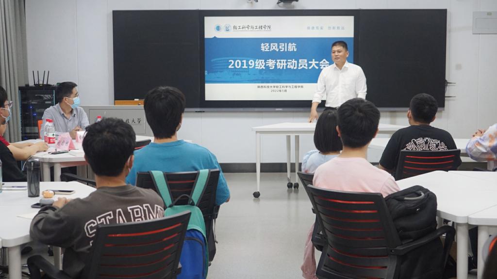 为了帮助同学们更好了解2022年考研录取情况和2023年考研的基本形势,5月18日,轻工科学与工程学院在教五举行“轻风引航”——2019级本科生考研宣讲会。轻工学院院长吕斌、学院党委副书记张乾隆、副院长刘国栋,2019级辅导员及19级全体学生参加会议。宣讲会由张乾隆主持。