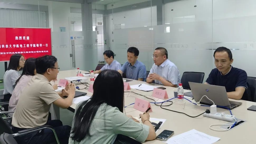5月31日,机电工程学院党委书记夏祥林、副院长杨立军、机器人工程专业教研室主任刘庆立、副教授李晨一行到西安中科光电精密工程有限公司,与该公司董事长吴易明、智慧物流技术部经理赵军丽、智能焊接机器人事业部副部长张保军、人力资源与行政部总监史文静、知识运营总监梁晶座谈交流,参观公司生产基地和产品演示。