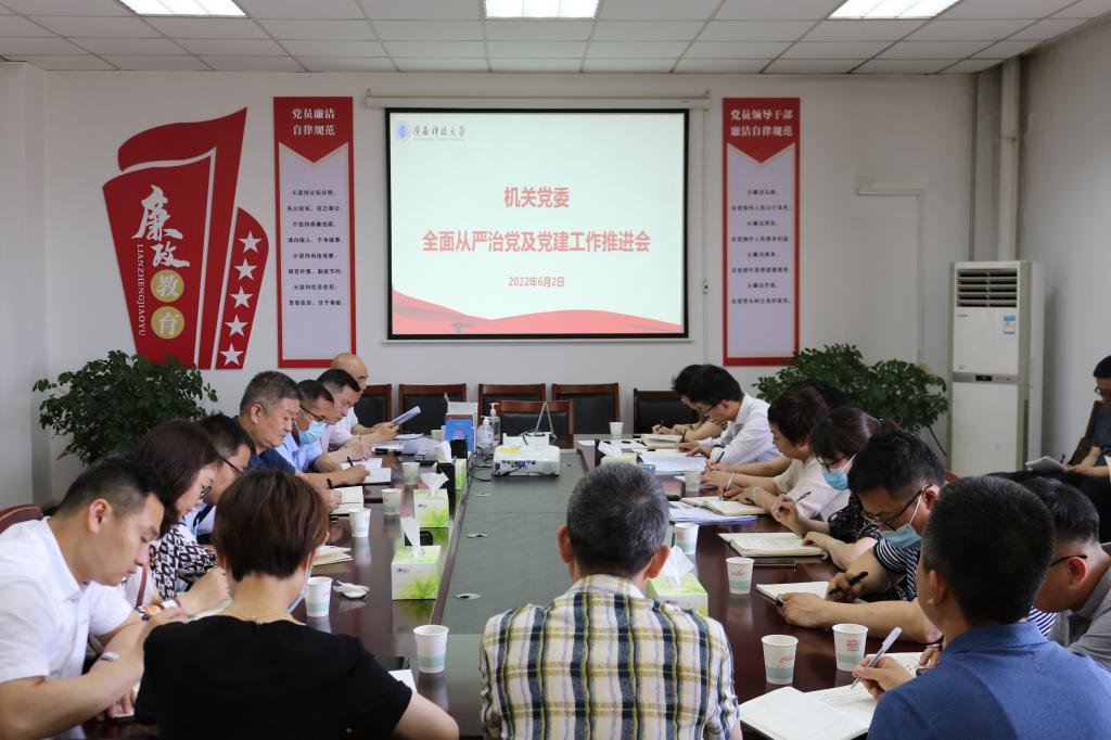 6月2日上午,机关党委在校廉政教育基地召开2022年机关全面从严治党及党建工作推进会。机关党委书记王帏主持会议,机关党委委员、各党支部书记参加会议。