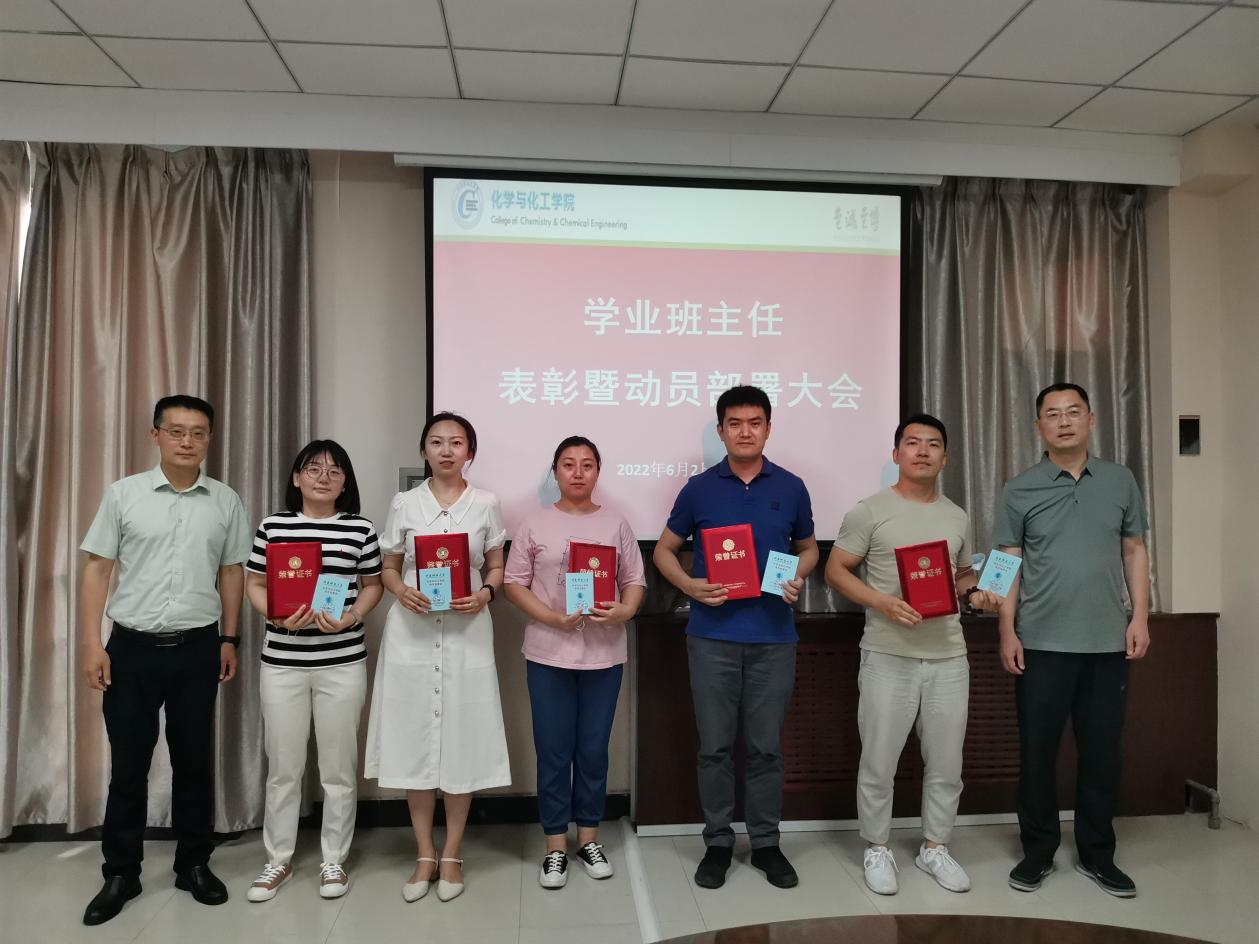 为深入贯彻落实学校本科人才培养的“三三三”输出结构目标,进一步提升人才培养和学风建设质量,充分发挥先进典型在人才培养过程中的示范引领作用,营造升学就业浓厚氛围,6月2日下午,化学与化工学院召开学业班主任表彰暨动员部署大会。学院全体班子成员、各系主任、全体学业班主任及本科生辅导员参加了会议,会议由院长助理王伟涛主持。