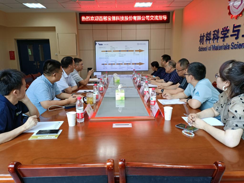 7月5日,西部宝德科技股份有限公司董事长吴引江、副总经理梁永仁一行到德赢官网材料科学与工程学院进行调研交流。座谈会由材料学院院长朱建锋主持,材料学院班子成员、教师代表参加了此次会议。双方围绕国家重点实验室共建工作、人才交流、科研合作等具体事宜进行座谈讨论。