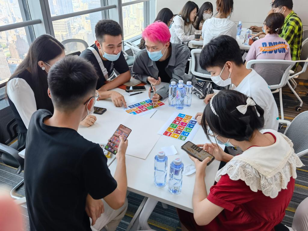 线下实践阶段,学生们参与到联合国工业发展组织-全球科创中心、外交部南南合作促进会和欧盟中国委员会上海长三角中心3个国际组织的实地实践活动中。在联合国工业发展组织-全球科创中心,学生们以联合国17个可持续发展目标为主题,思考并阐述同学们视角下的贫困、资源、健康、生产、教育等国际社会关注的热点问题和可能的解决方案,以小组为单位现场查找资料绘制海报演讲汇报。在参访外交部南南合作促进会时,上海办主任、前中国驻多伦多总领事参赞洪涌清通过自己的外交生涯成长经历给同学们上了生动的一课。在欧盟中国委员会上海长三角中心,同学们分组以路演的形式,组织策划并汇报选定的国际组织在年预算200万人民币前提下的全年工作计划及活动方案。