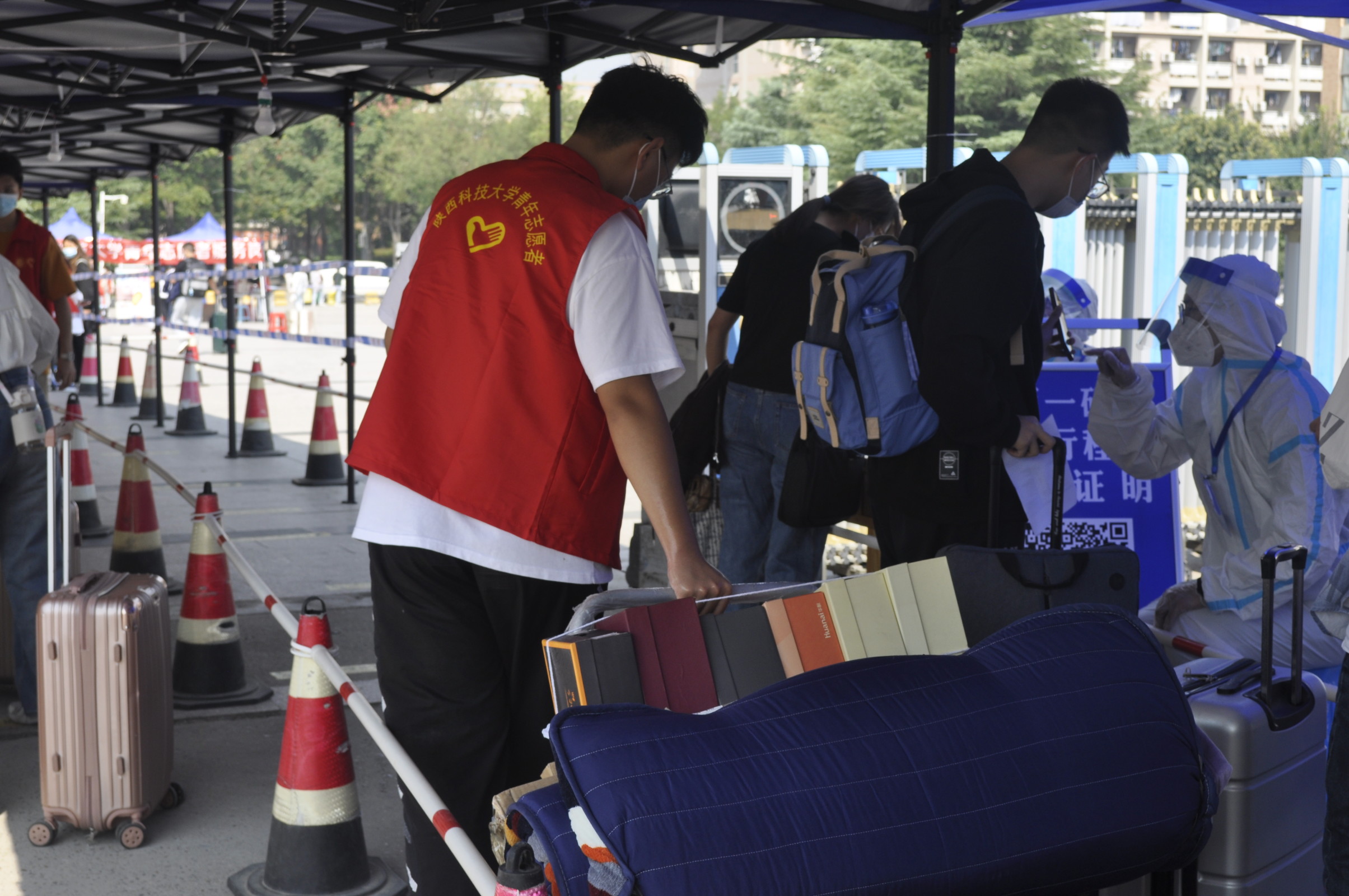 整体统筹规划,细化迎新内容。在本次迎新工作中,校团委4位教师为新生的入学奔波在第一线,从早晨6点至傍晚11点全程17小时驻守迎新点,全流程同志愿者一起开展车辆引导、行李搬运、新生家长疏导、新老生入校等志愿服务工作,不惧风吹雨打,用实际行动践行了“不管多晚,等你回家”的承诺,充分发挥为人师表、以身作则的榜样力量。德赢官网青年志愿者一体双翼,分区设岗,校外在火车站、汽车站、西安北站等3个重要交通站点提供返校学子接站服务;校内设有家长引导、凭证核查、行李搬运、宿舍引导等多个岗位引导新生入校报到,他们同校团委教师一起实力护航新生入学“第一站”,为疫情下科大学子顺利返校提供了坚实保障。