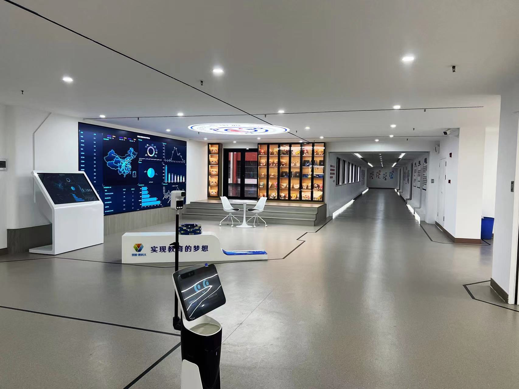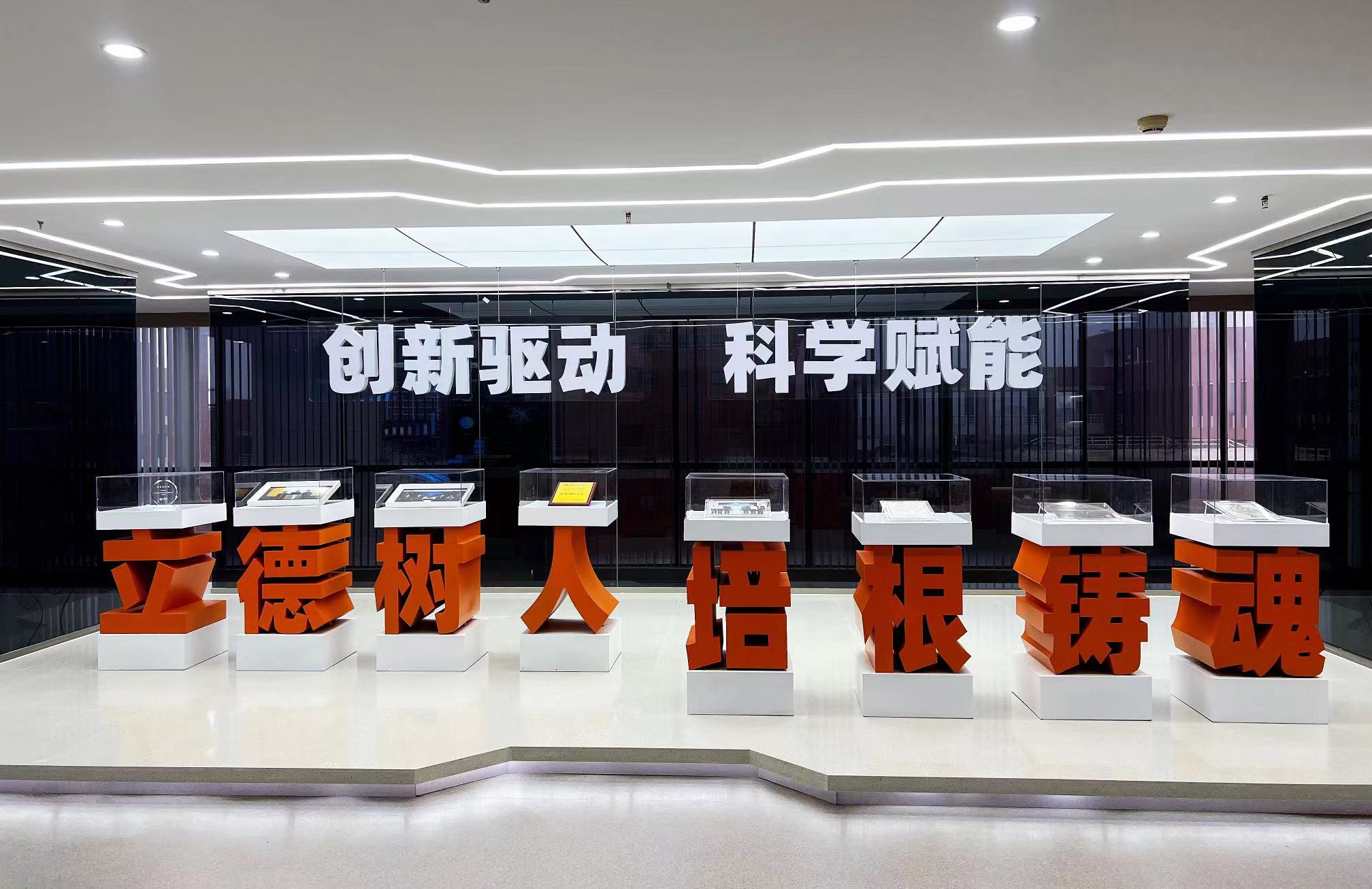 网络思政中心二期面积约550㎡,建设内容主要为“两中心一空间”,即精准赋能研究中心、网络思政教育研究中心、优质网络文化作品培育众创空间三个创新平台的建设。由大厅标识区域、易班网薪商城、互动融媒大屏展示区域、文化长廊、精准赋能研究中心、优质网络文化作品培育众创空间、网络思政研究中心七个部分组成。