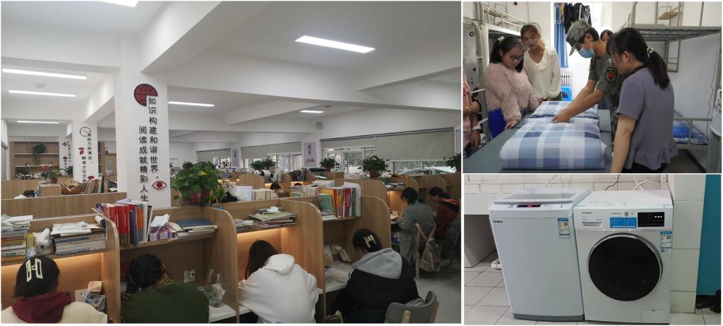 方便学生在校生活,完善功能配套设施。为解决生病学生就医行动难、学生意外受伤暂时出行不便等问题每个公寓购置轮椅供学生随时借用;为解决部分公寓洗衣房洗衣量大周转时间长等问题,优化洗衣机设置方案,在部分楼层添加洗衣机;积极联系床体生产厂家对部分床体进行加固和添加缓冲物,解决床体噪音问题。