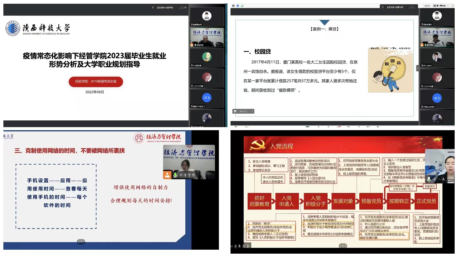 为帮助2022级本科新生尽快适应大学阶段的学习和生活,进一步增强对学校、学院的集体归属感和学科专业的认同感,激发励志成才正能量,经济与管理学院于10月24日至28日,分专业采用线上方式组织开展了2022级本科生线上入学教育。