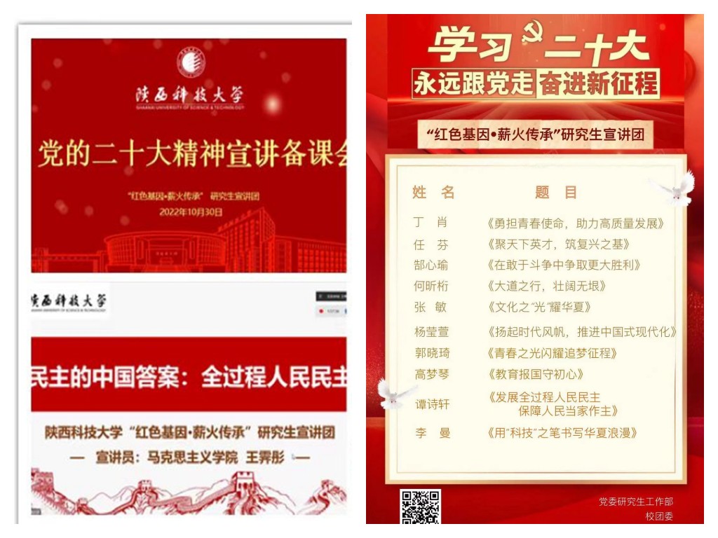 “红色基因·薪火传承”研究生宣讲团开展党的二十大精神宣讲集体备课会,宣讲团成员切实增强学习宣传贯彻党的二十大精神的使命感和责任感,围绕学习贯彻党的二十大精神,交流学习感悟,分享宣讲提纲,开展磨课备课,力争做到让青年学生听得懂、能领会、可落实,把党的二十大精神宣讲好。11月1日,正式推出“学习党的二十大、永远跟党走、奋进新征程”主题微宣讲课单(第一期),接受校内班级党团组织预约,以期发挥朋辈引领作用,用党的科学理论武装青年,用党的初心使命感召青年,带动全校青年学生迅速掀起学习宣传贯彻党的二十大精神的热潮。
