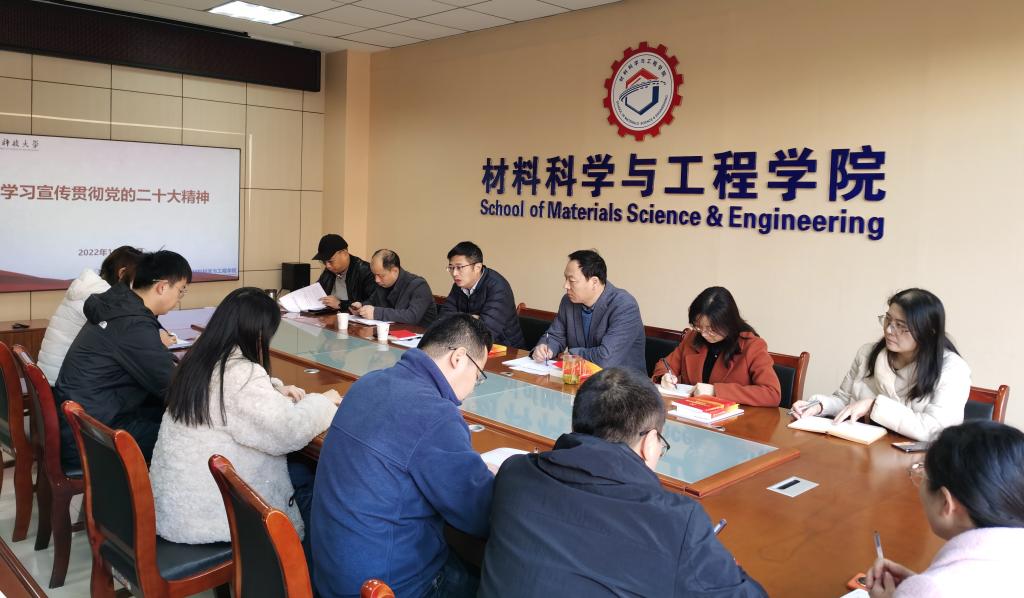 11月15日,材料科学与工程学院(文物保护科学与技术学院)召开党委(扩大)会暨中心组理论学习会,专题学习宣传贯彻党的二十大精神。学院党委委员、班子成员、各党支部书记参加会议。学院党委书记杨长安主持会议。