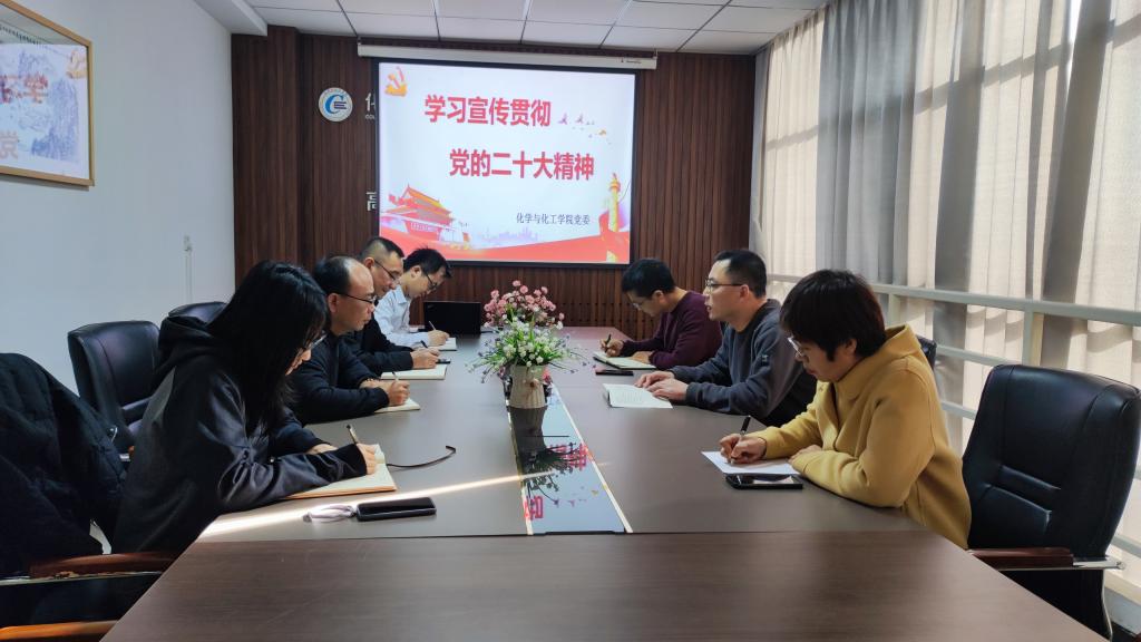 11月22日上午,化学与化工学院党委召开理论中心组学习(扩大)会议,专题学习党的二十大精神,部署安排学习宣传贯彻工作。会议采取线上线下相结合的方式,学院全体班子成员、党委委员、党支部书记、系(室)主任参加,会议由学院党委书记张岩主持。