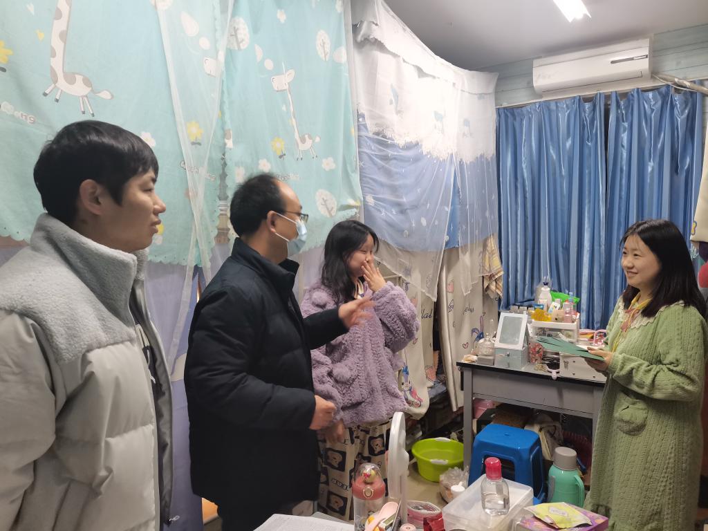 12月9日晚,受化学与化工学院党政班子集体委托,化工学院党委副书记赵钢、19级辅导员老师邰鹤立一行前往学生一、五公寓,看望慰问毕业年级考研学子,为他们送上关心与祝福。