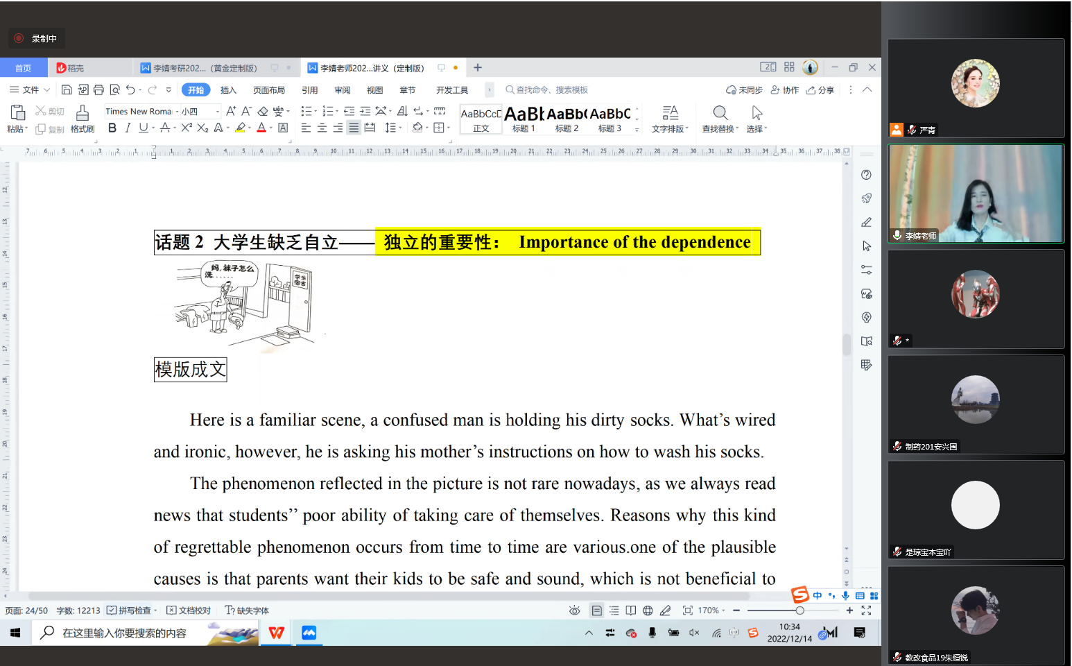 为了帮助考研同学做好最后重难点知识梳理,坚定考研信心,促进冲刺期高效复习,根据学生的实际需求,12月13日至14日,食品科学与工程学院(生物与医药学院)邀请考研辅导名师开展政治、英语、数学科目冲刺专题讲座。毕业班辅导员严青主持讲座。
