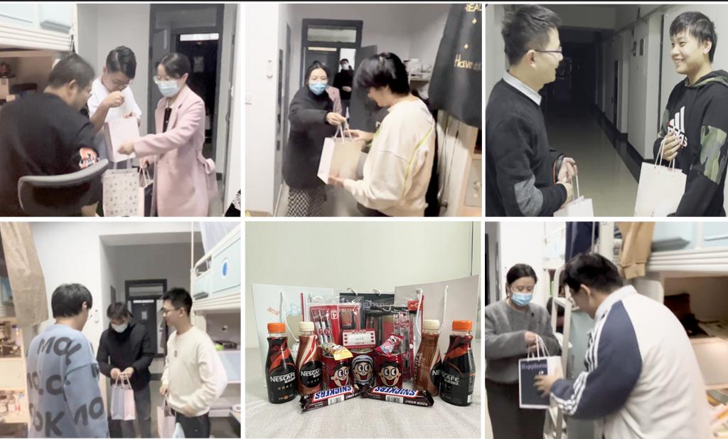 此次慰问活动学院为考研学生精心准备了“考研加油包”和“考研能量包”。“考研加油包”中包括定制文具福袋、祝福刮刮卡,“考研能量包”中包括雀巢咖啡、士力架、旺仔牛奶等,每一份礼物都寄托着学院对考研学生的美好祝福。