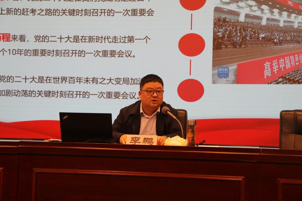 报告会上,李鹏以“深入学习贯彻党的二十大精神”为主题,结合德赢官网学生工作实际,从“党的二十大召开的基本情况”“深入学习掌握党的二十大报告中的理论重点”“学思践悟、团结奋斗,为推进学生工作高质量发展贡献力量”三个方面,对党的二十大精神进行了全面、系统、深入的解读辅导,重点就辅导员如何提升理论学习兴趣、培养学习阅读习惯、做好实践育人等分享了个人经验心得,对如何以党的二十大精神指导学生工作更好开展提出了工作思路和实操举措。报告在全体学生工作干部中引发热烈反响。