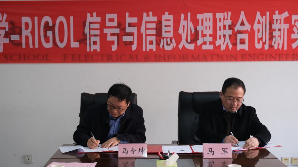 在校企双方人员的共同见证下,马令坤代表学院与普源精电科技股份有限公司签署校企合作协议,吕文华、马军代表双方为“德赢官网Vwin—RIGOL信号与信息系统处理联合创新实验室”揭牌。