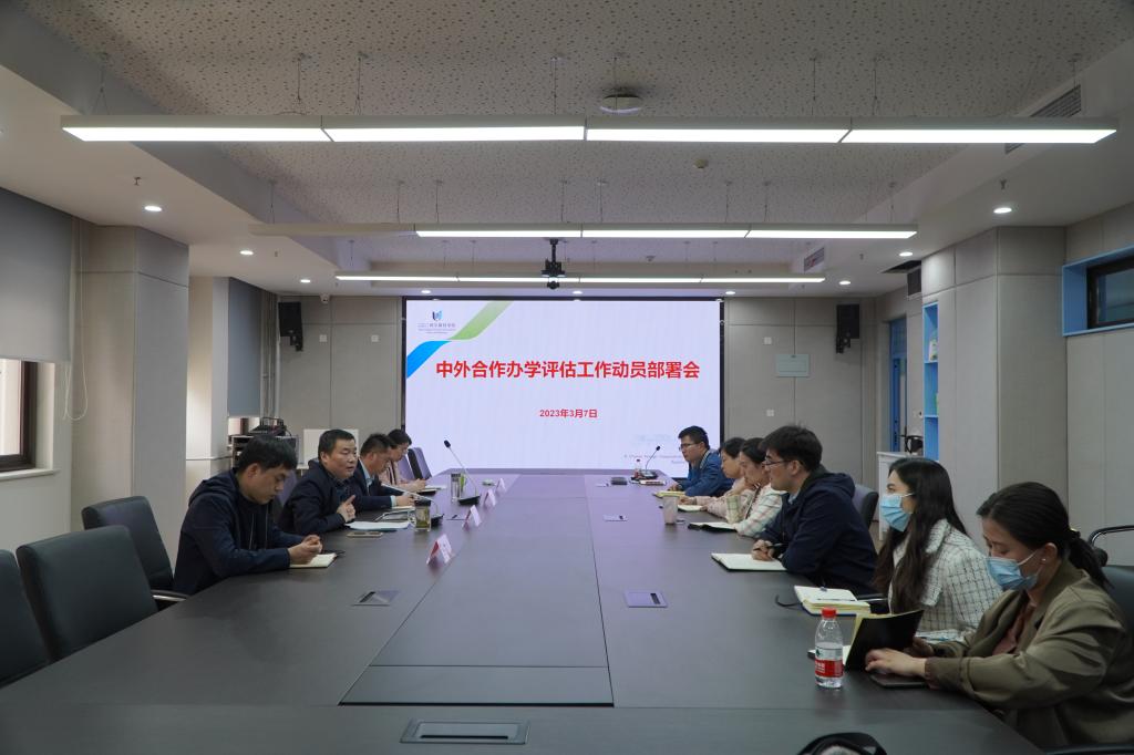 薛朝华对学院2023年度中心工作进行安排部署,并重点对教育部中外合作办学评估指标体系进行解读,明确了自评报告撰写的任务分工、注意事项以及时限要求。