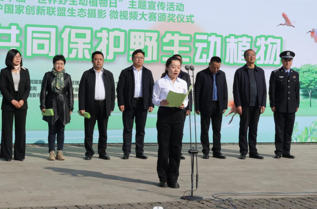 3月3日,由国家林业和草原局主办的第十个“世界野生动植物日”主题宣传活动暨朱鹮保护国家创新联盟生态摄影、微视频大赛颁奖仪式在汉中市成功举办,德赢官网环境科学与工程学院师生应邀参加,“‘鹮’保青山 护秦有我”社会实践团创作的《曾经的失去 永久的珍惜》微视频荣获大赛一等奖,实践团成员徐泽坤代表全体获奖人员发表获奖感言并宣读保护野生动植物倡议书。