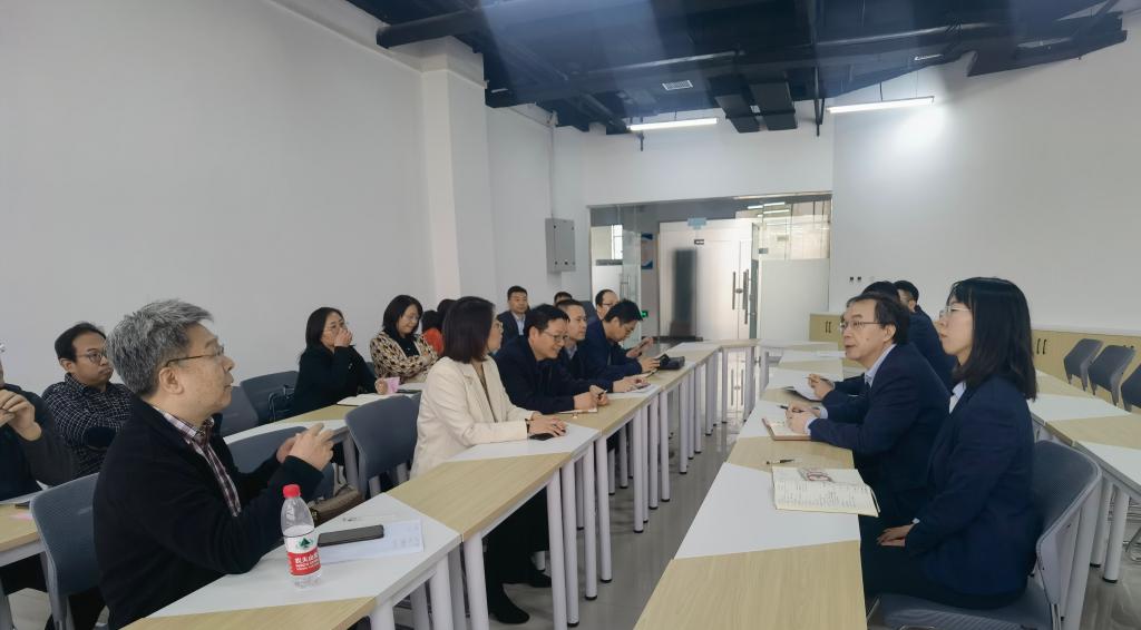 会后,袁晓军一行参观了位于研究生二号楼的集成电路与应用未来研究院实验室,并与校内导师就研究项目落实、合作指导方式等具体工作做了深入的交流讨论。