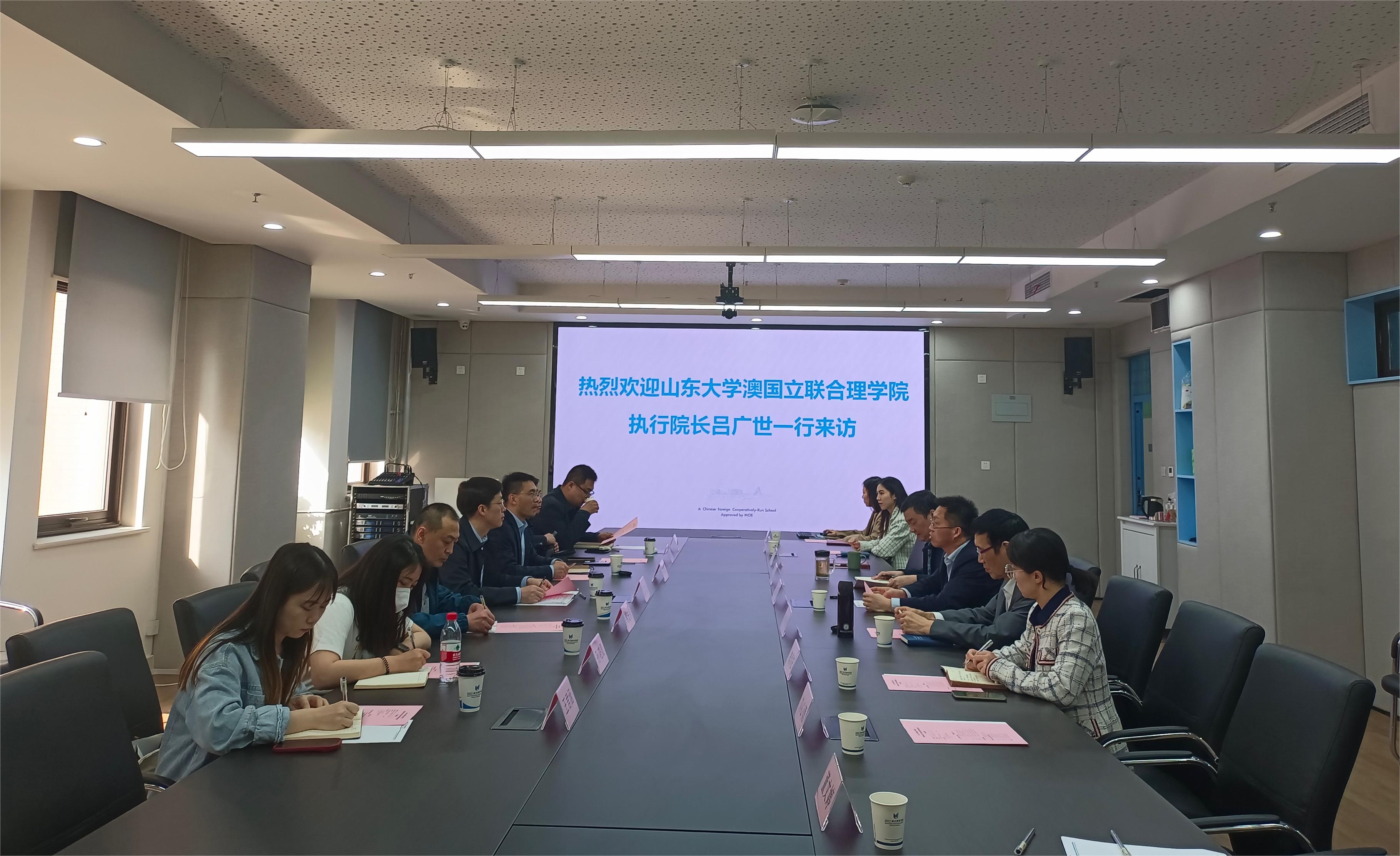 薛朝华首先对吕广世一行的到访表示欢迎,并从学院概况、办学条件、建章立制及未来发展等四个方面介绍了阿尔斯特学院的建设现状和中、长期规划。吕广世简要介绍了山东大学澳国立联合理学院的运行管理情况。随后,双方就中外合作办学的日常管理、制度建设及教育部中外合作办学前期准备工作等方面进行了充分交流研讨。