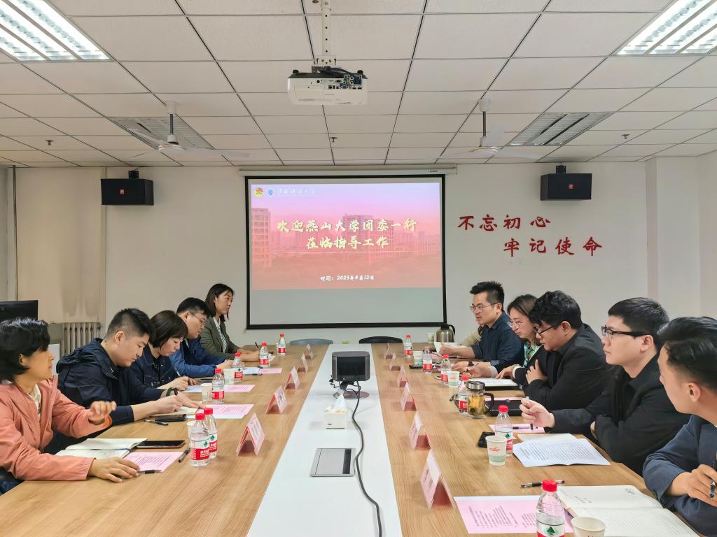 4月12日下午,燕山大学团委副书记王海涛一行来德赢官网就共青团工作进行调研交流。交流座谈会在教四501会议室召开,德赢官网团委副书记王雪婧、赵闯和校团委全体团干部、部分学院团委书记参加座谈。