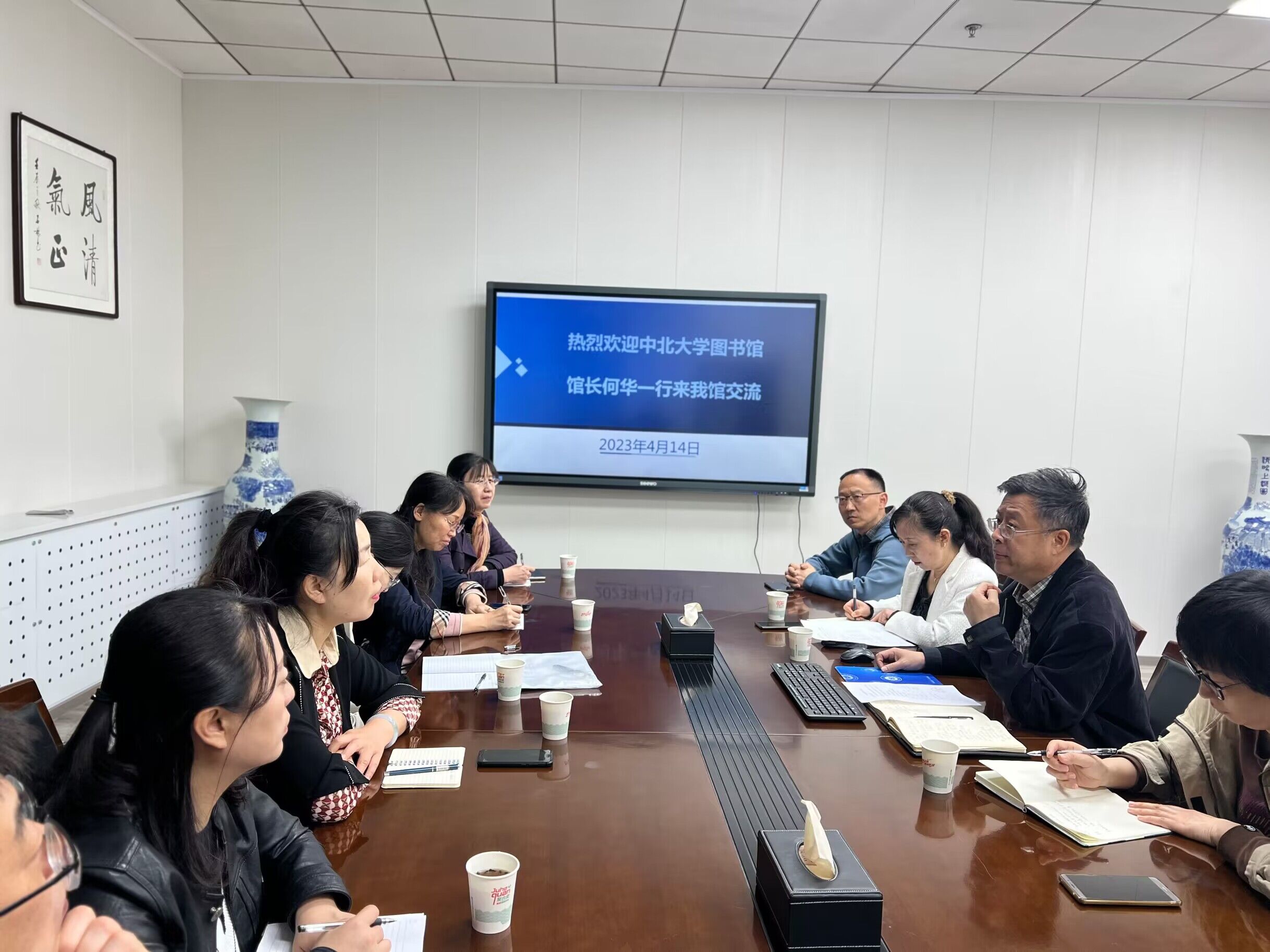 4月14日上午,中北大学图书馆馆长何华一行8人来德赢官网图书馆就智慧图书馆建设、学科服务、阅读推广工作进行调研交流,图书馆馆长王海刚、副馆长赵小羽及相关部主任参加了座谈。