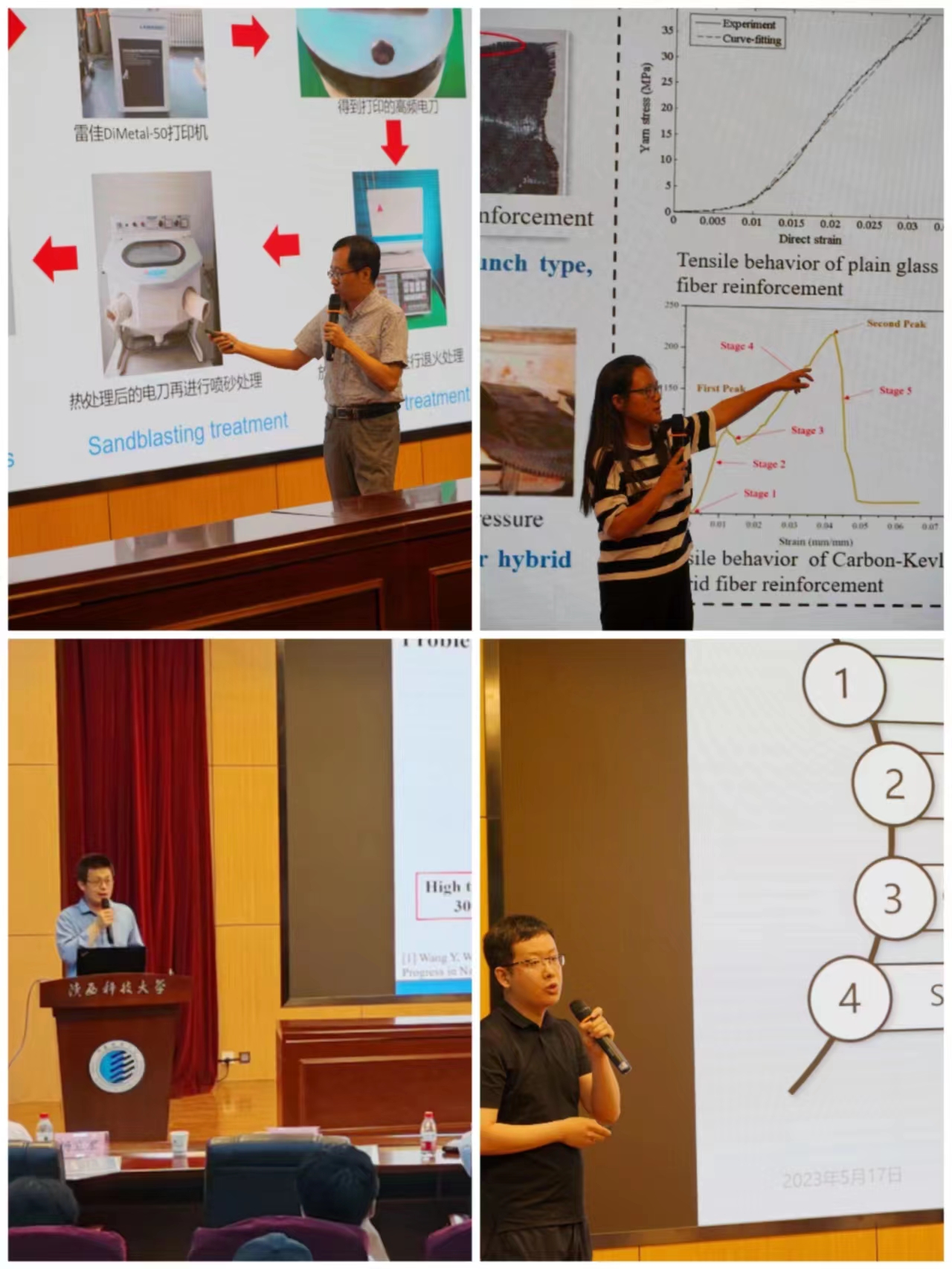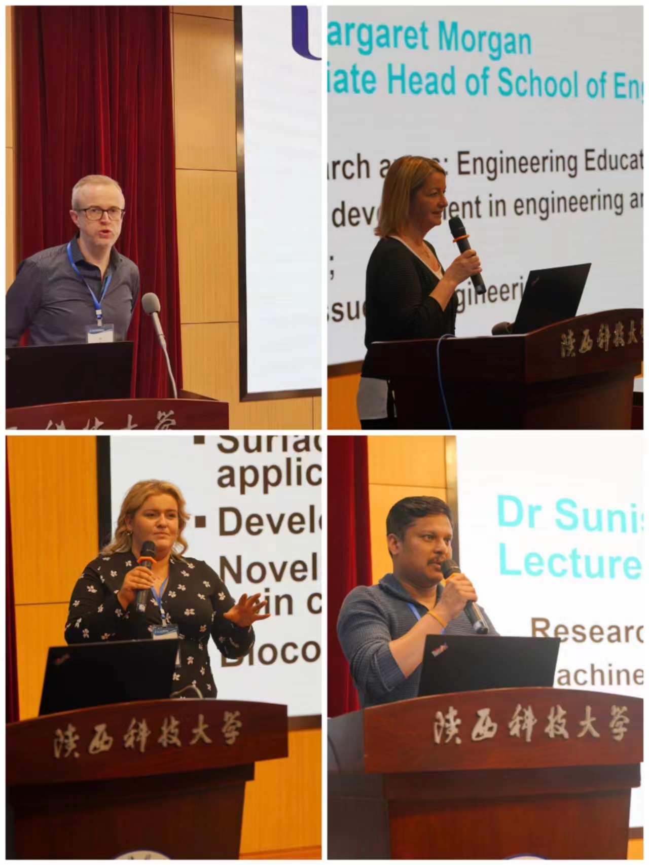 阿尔斯特大学工学院Dewar Finaly教授首先总体介绍了英方主要从事的科学研究领域、优势学科等,随后Dewar Finaly教授、Margaret Morgan教授、Joanna Ward博士、Sunish Kumar Orappanpara Soman博士四人分别做了“Biomedical Signal Processing and Healthcare Technology”,“Skills Development in Engineering and Technology Students”、“Surface Science and Thin Film Coatings for Biomedical Applications - Physical and Chemical Characterization”和“Machine Learning Techniques for Wireless and Optical Communications Systems”等学术报告。机电工程学院李晨教授、高飒飒副教授、宋文杰副教授、张萌副教授分别做了“Laser-induced Biomimetic Surface Micro/Nano Structures on Stainless Steel 316L”、“Research on Preforming Modeling and Numerical Simulation of Hybrid Woven Reinforcement”、“TiO2@C Catalyzed Hydrogen Storage Performance of Mg-Ni-Y Alloy with LPSO and Ternary Eutectic Structure”、“ Design and Control of Piezoelectric-Driven Mechanisms”的学术报告。学术报告结束后,与会师生进行了热烈互动交流。