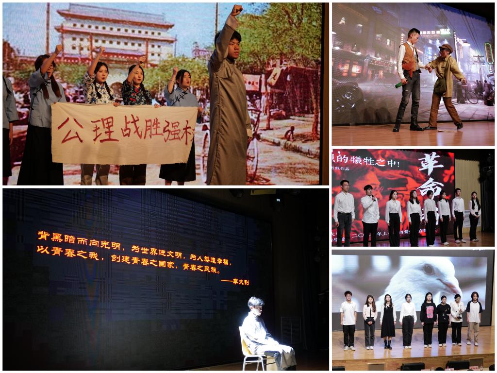 在宣誓仪式的红色文艺展演环节,艺播专业本科生党支部、朗诵主持队表演了配音作品《传承先烈遗志,共筑强国盛世》《她》,院学生会话剧队、“艺心向党”工作室自编自演了话剧《革命者》,同学们结合自己的专业特长表达了对革命先烈的崇高敬意。
