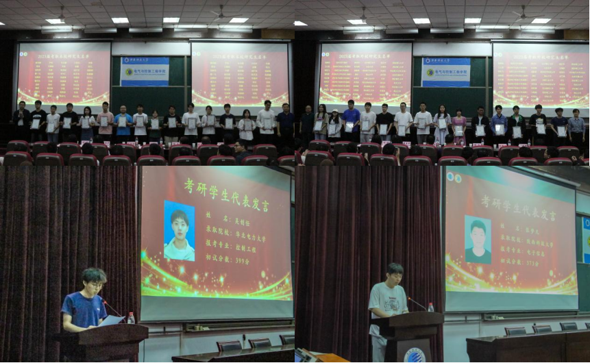 会议第一阶段对2023届升学学生和优秀宿舍进行表彰。院长助理杨南宣读了《关于表彰2023届优秀考研毕业生的决定》,张凯凯、学院班子和各系部主任为2023届升学学生和优秀宿舍颁奖。2019级考研优秀学生代表吴创任、张梦凡分享了考研经历和学习经验,号召2024届考研学生脚踏实地,志存高远。