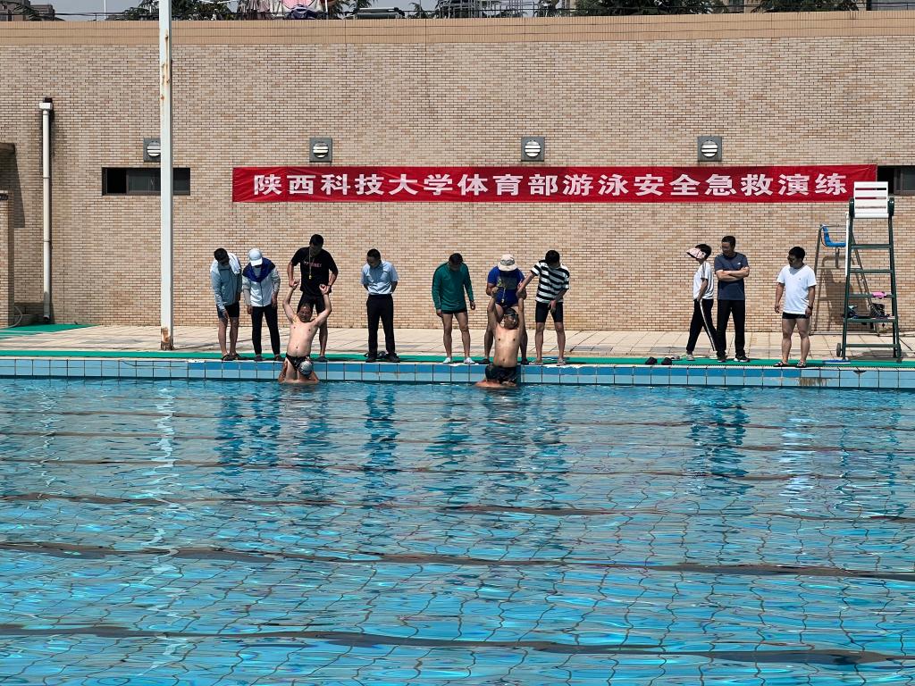 为保障游泳课程顺利开展和防范溺水安全事故的发生,贯彻落实全校安全稳定工作会议有关要求,压实安全管理工作责任,体育部于6月1日和8日分别开展全体教师游泳技能学习和泳池安全急救实景演练。本次活动演练邀请省教育厅学生体协游泳专业委员会教师、西安泳往直前游泳俱乐部教练员3人来校讲解演示,针对游泳技能教学和夜间开放期间可能遇到的问题进行实操演练。