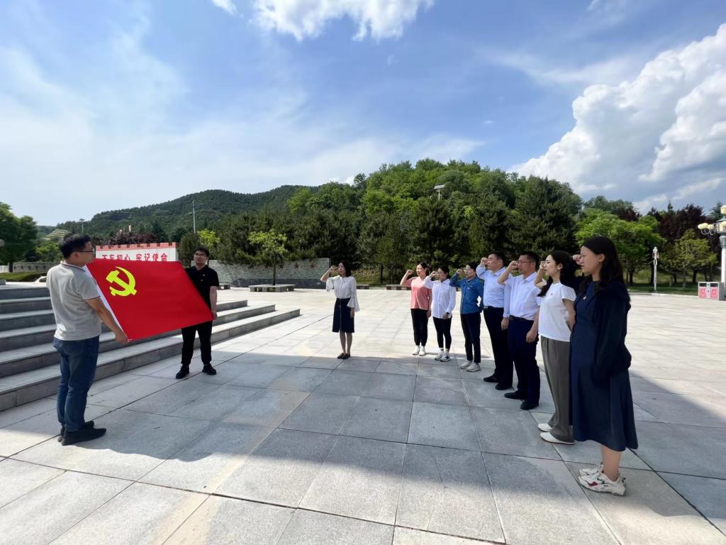 在马栏革命纪念碑前,全体党员面向党旗宣誓,重温入党誓词,向用热血淬炼的革命精神致以最崇高的敬意。