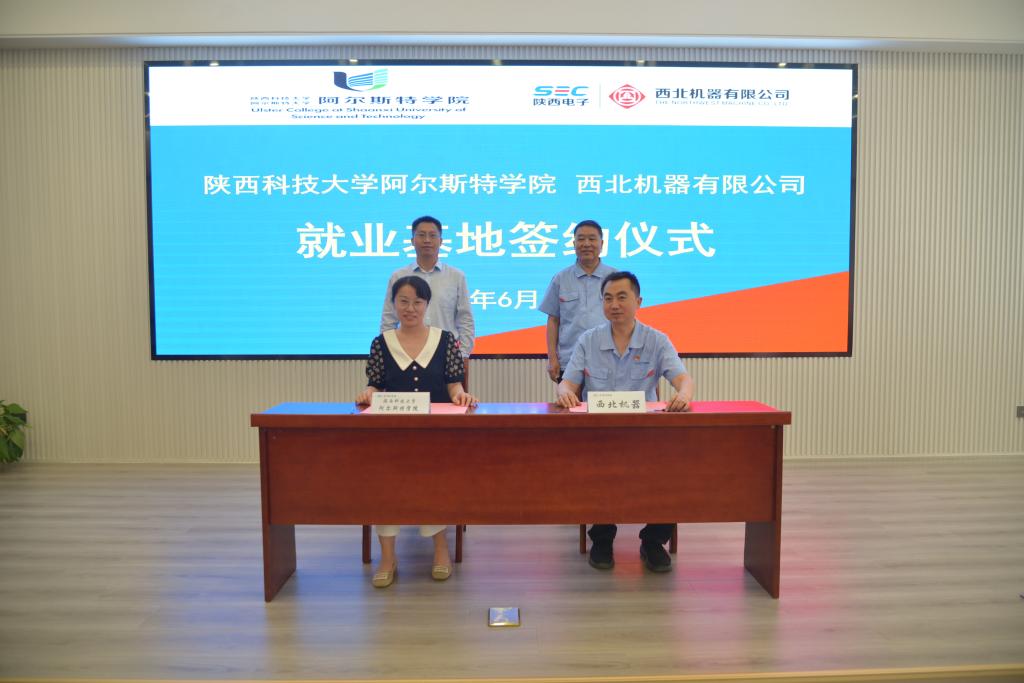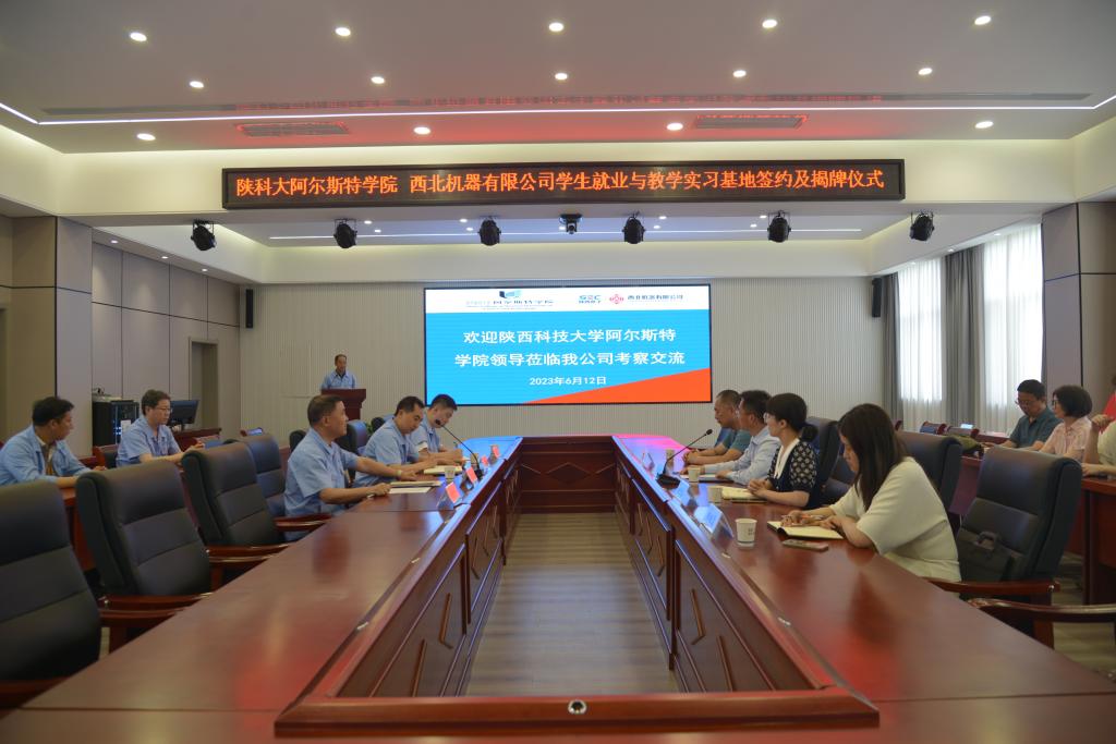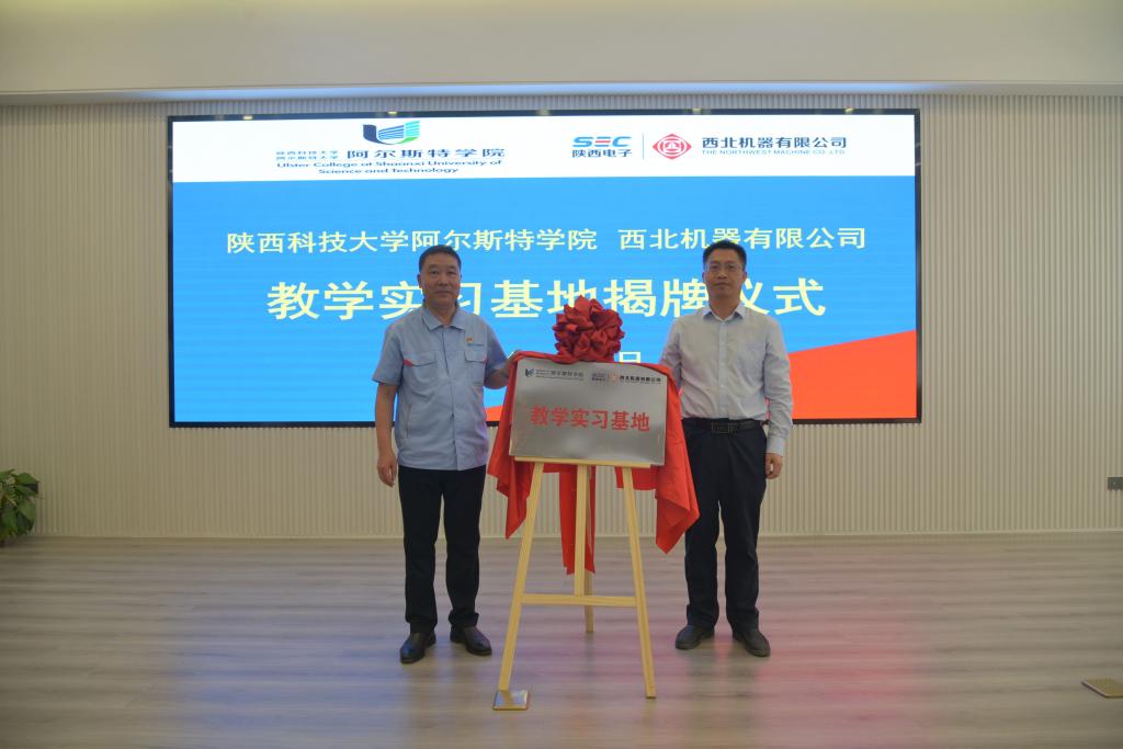 6月12日,阿尔斯特学院与西北机器有限公司举行教学实习基地揭牌暨学生就业基地签约仪式。阿尔斯特学院常务副院薛朝华、西北机器有限公司副总经济师闫华磊及双方相关负责人参加仪式。