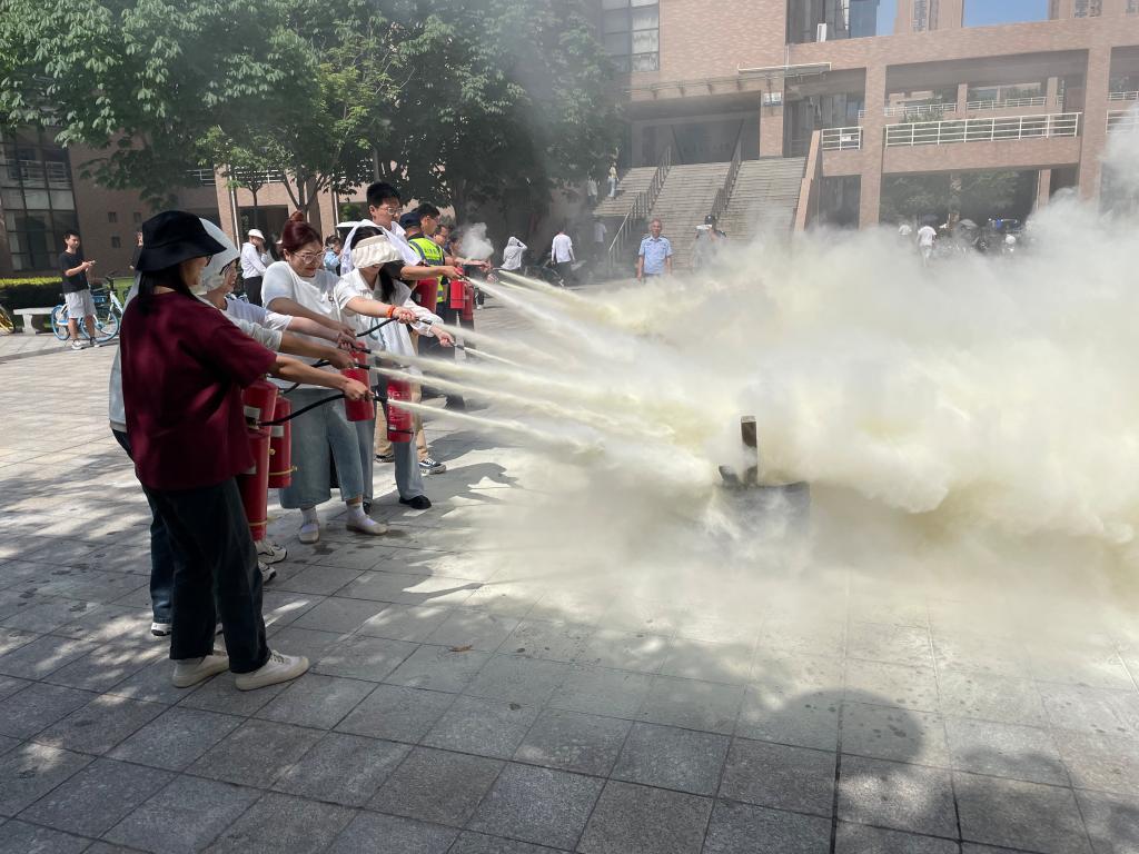 保卫处杜雄剑老师详细介绍了消防演练的意义、方法和注意事项;讲解了灭火器的构造、火情的判断、灭火器的使用方法和注意事项等消防知识。在随后的实战灭火训练中,杜雄剑为学生进行了标准示范,并组织学生亲身实践了灭火器的正确使用方法程序,进行了现场灭火演练。此次消防安全教育和灭火演练活动,帮助师生掌握了防火灭火的基本常识,提高了广大师生对消防设备使用的熟练程度,进一步增强了师生的消防安全意识、遇到突发火灾时的自救能力和自防能力,为校园消防安全稳定奠定了坚实基础。