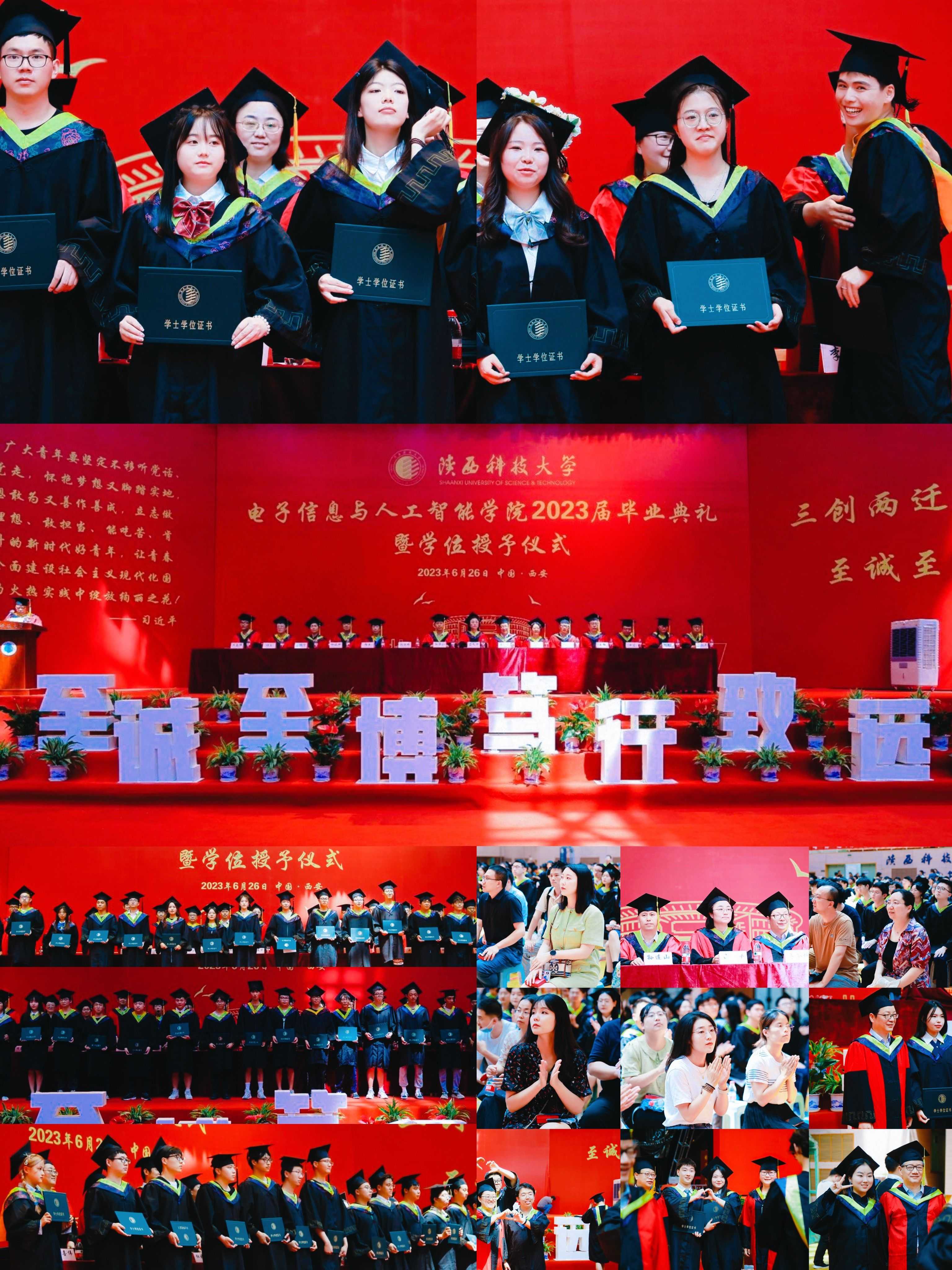 为营造温馨的毕业氛围,电智学院精心策划了2023届毕业典礼暨学位授予仪式,全院在岗教师悉数到场送毕业生最后一程。典礼上光电系主任张方晖老师以真挚、诚恳、朴实语言作为教师代表致辞,表达了学院对毕业生的祝福与期许。毕业生代表计算机191班杜洁琼从回忆、感念、致敬、感恩等方面,表达了毕业生对母校的不舍,表达了对师长的感恩。学院党政领导、专任教师,逐一为毕业生扶正流苏,颁发学位证,赠送定制的毕业礼品并亲切合影留念。