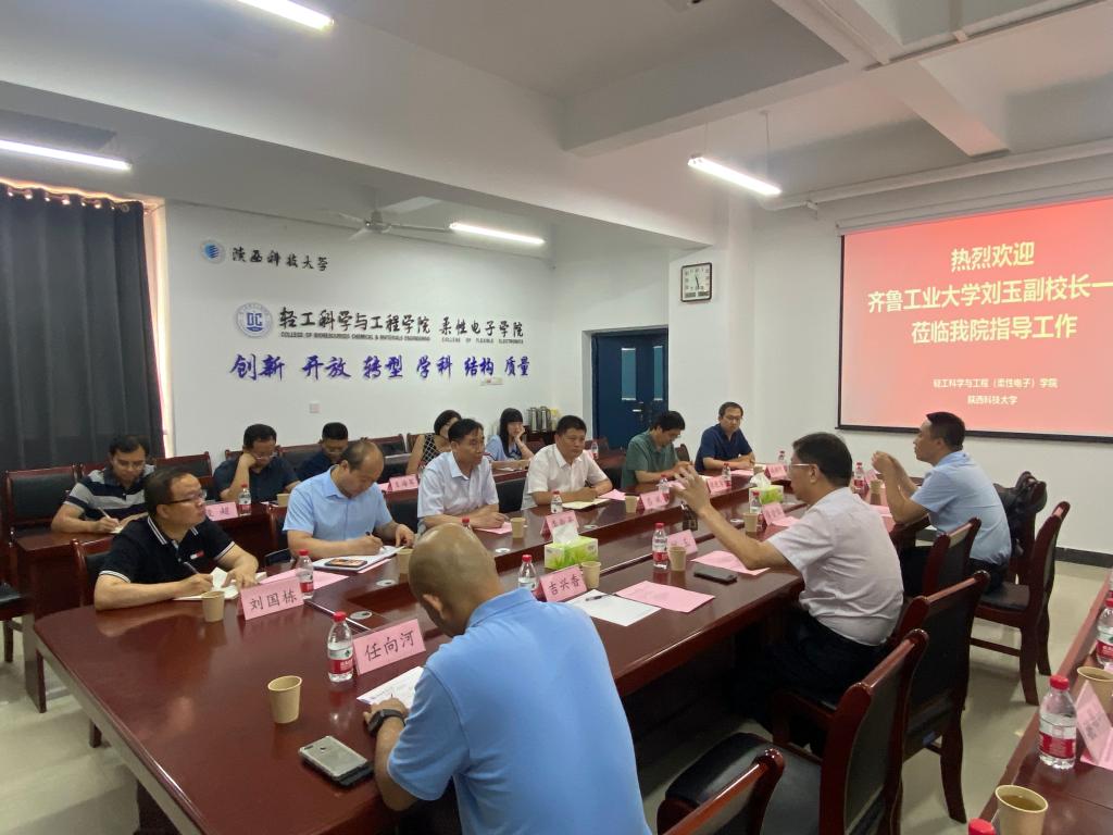 6月29日下午,齐鲁工业大学副校长刘玉、教务处处长李金红、轻工学部主任吉兴香、政法学院院长赵金国等一行7人前来德赢官网轻工科学与工程学院(柔性电子学院)进行调研交流,座谈会由轻工学院院长吕斌主持,轻工学院班子成员及各系主任参加座谈。