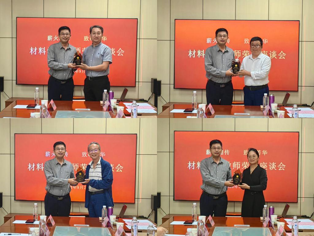 四位教授深情回顾了过去几十年的工作经历,并表达了对学校、学院、同事的依依不舍之情。他们表示今后会继续关注学校和学院的发展,并尽己所能继续支持学校和学院的各项事业。座谈会上,各位老师畅谈与几位教授共事期间的工作感想以及深厚情谊,大家纷纷表示,老教授们的敬业奉献、踏实笃行就是材料人最好的榜样,他们的求真务实、兢兢业业留给材料人深刻的印象,更感谢老教授们为学校、为学院付出的心血和汗水。