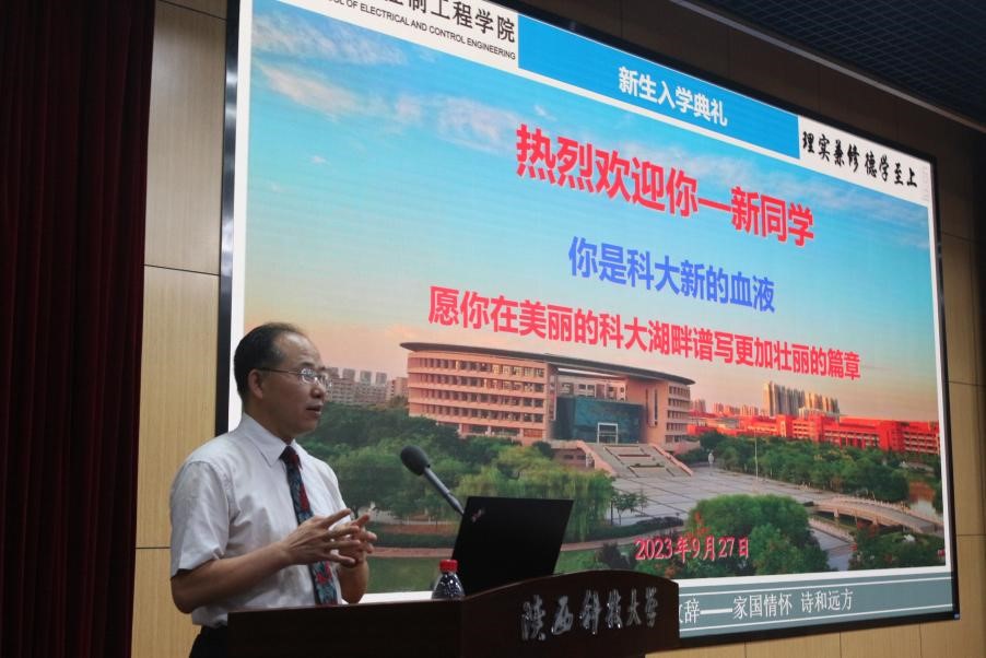 为帮助2023级本科生快速适应大学生活,明确未来目标和发展方向,科学规划大学生涯,帮助新生扣好大学生涯的“第一粒扣子”。2023年9月27日,电气与控制工程学院于图书馆一楼学术报告厅举办“2023级新生班主任聘任暨本科生入学教育大会”。电控学院党委书记乔明哲、院长汤伟、副院长周强及学院班子成员、党委委员、各系部主任、2023级新生班主任、新生辅导员雷丹、李恩,与来自全国各地的2023级442名“电控新人”一道,开启他们的人生新篇章。大会由电控学院2023级辅导员雷丹主持。