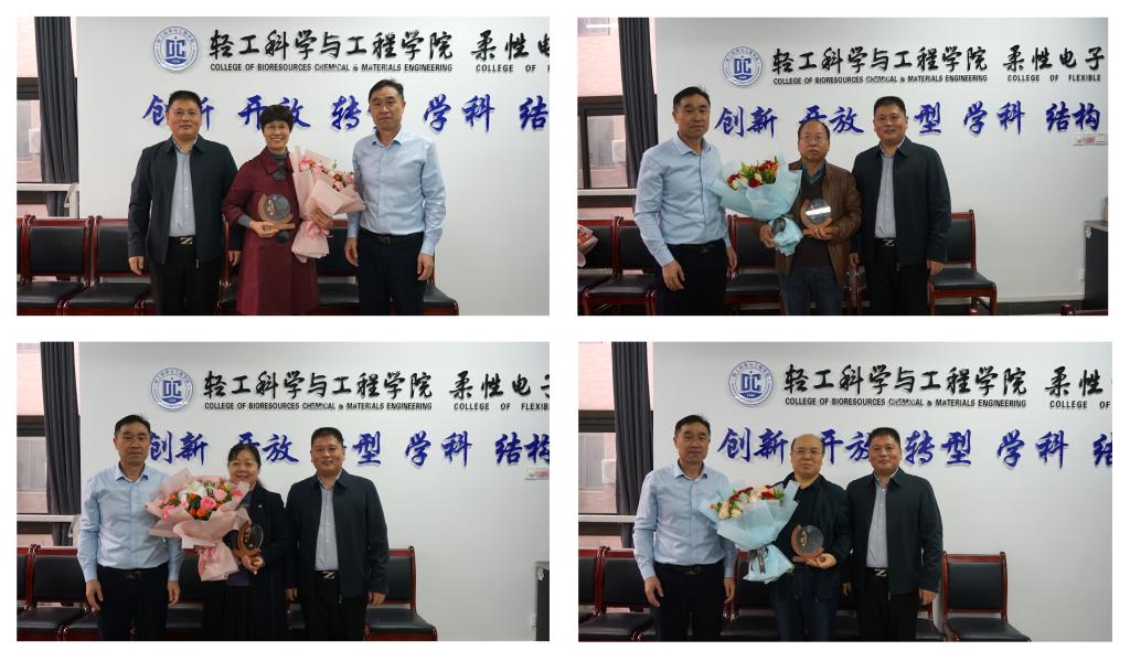 学院党委书记李新平代表学院对光荣退休的四位老师表达感谢和祝福,并充分肯定了他们多年来为学校、学院做出的贡献,向他们表示崇高的敬意,希望退休教师能与学院保持紧密联系,一如既往的关心、支持学院事业的改革与发展,同时祝愿他们退休生活更加丰富多彩。轻工学院院长吕斌在讲话中对四位老师奉献学校、学院,在学科专业建设、人才培养、科学研究、服务社会、实验室建设等方面做出的突出贡献表示感谢,希望老师们安排好退休后的生活,将自己积累的人生经验和教育理念分享传承下去。