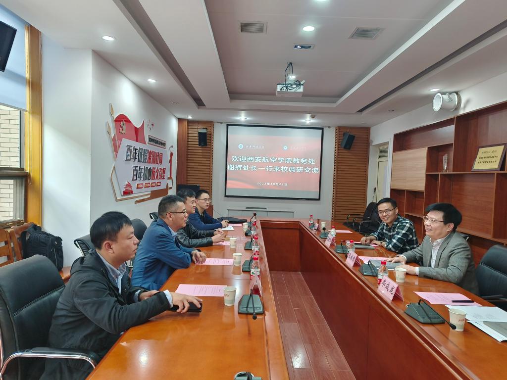 10月27日,西安航空学院教务处处长谢辉一行4人来德赢官网研究生院调研交流研考考点工作。研究生院院长陆赵情、研招办工作人员参加交流活动,会议由研究生院副院长吴鲁阳主持。