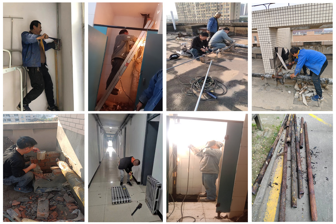 根据学校暖气试水安排,学生公寓通过广播、通知等方式将试水安排传达到每间宿舍,确保学生知晓并留意暖气试水是否正常。在试水过程中,针对工作人员发现和学生反馈的漏水情况,学生公寓组织维修人员加班加点,及时进行维修。试水期间,共维修漏水点13处,开挖暖气坑道1处,焊接管道7处。
