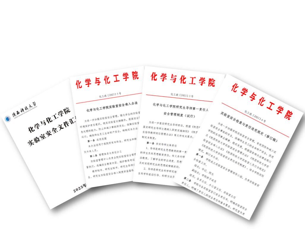 学院压紧压实建章立制工作,推动形成严防严管严治的实验室安全长效机制。制订研究生导师第一责任人安全管理制度和研究生安全管理制度,明确具体职责细化责任落实,充分发挥和落实导师第一责任人作用,进一步加强研究生的安全教育和管理。修订完善实验室安全准入和安全检查及责任追究制度,对安全培训、申请报备、实验管理、风险防范、责任分工等提出具体措施和要求。学院将实验室安全管理相关制度汇编成册,编辑印发《化学与化工学院实验室安全文件汇编》,向学院全体师生开展规章制度宣传解读系列活动,重点对2023年6月出台的国家标准《高等学校实验室消防安全管理规范》进行专题宣讲和解读。为深化源头治理强化责任考核严肃责任追究,学院与全体研究生导师签订了《化学与化工学院导师实验室安全承诺书》,确保实验室安全管理工作落地落实、见行见效。