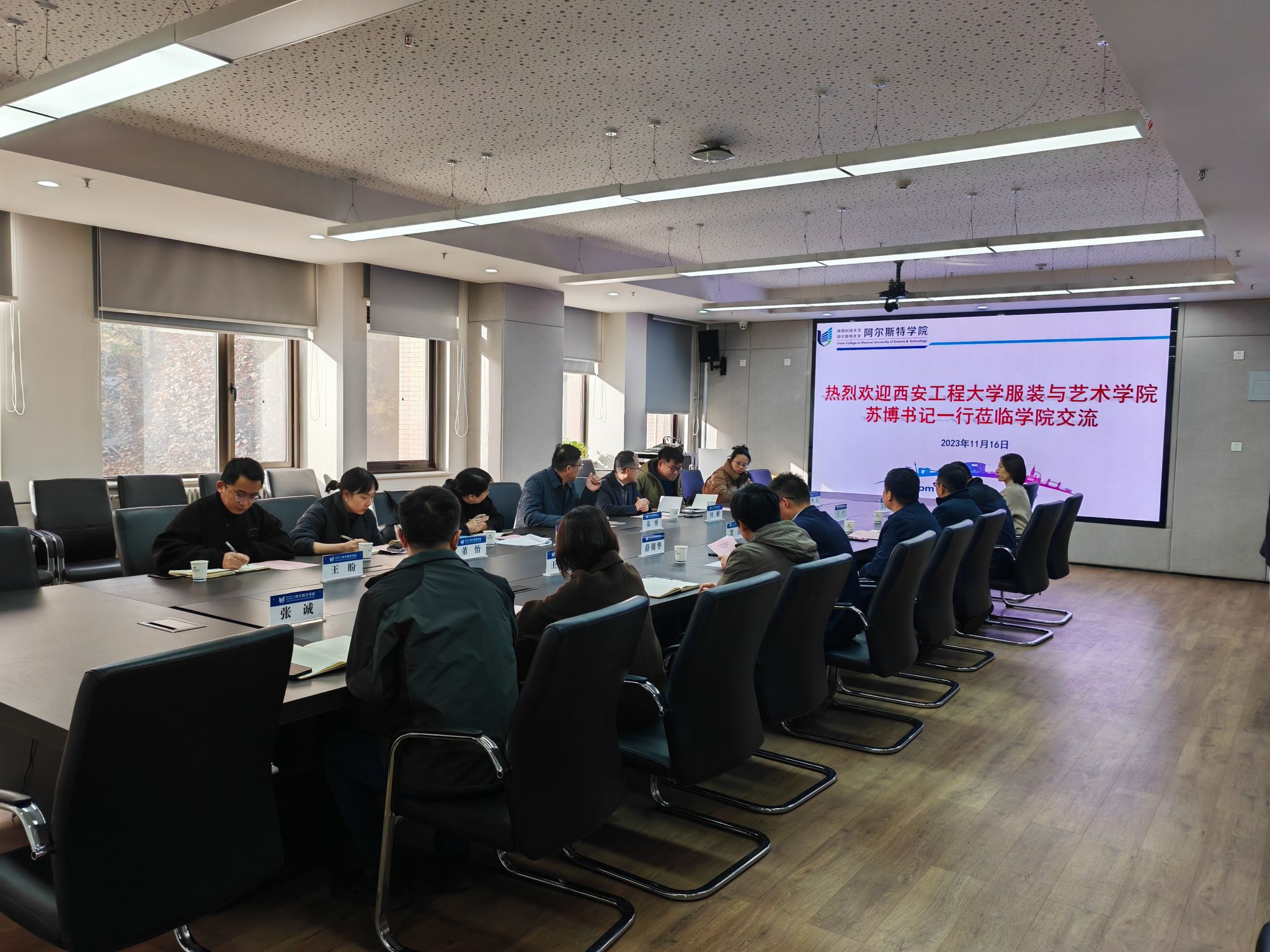 11月16日上午,西安工程大学服装与艺术设计学院党委书记苏博一行7人来阿尔斯特学院调研交流。学院领导班子及相关工作人员参加交流研讨。