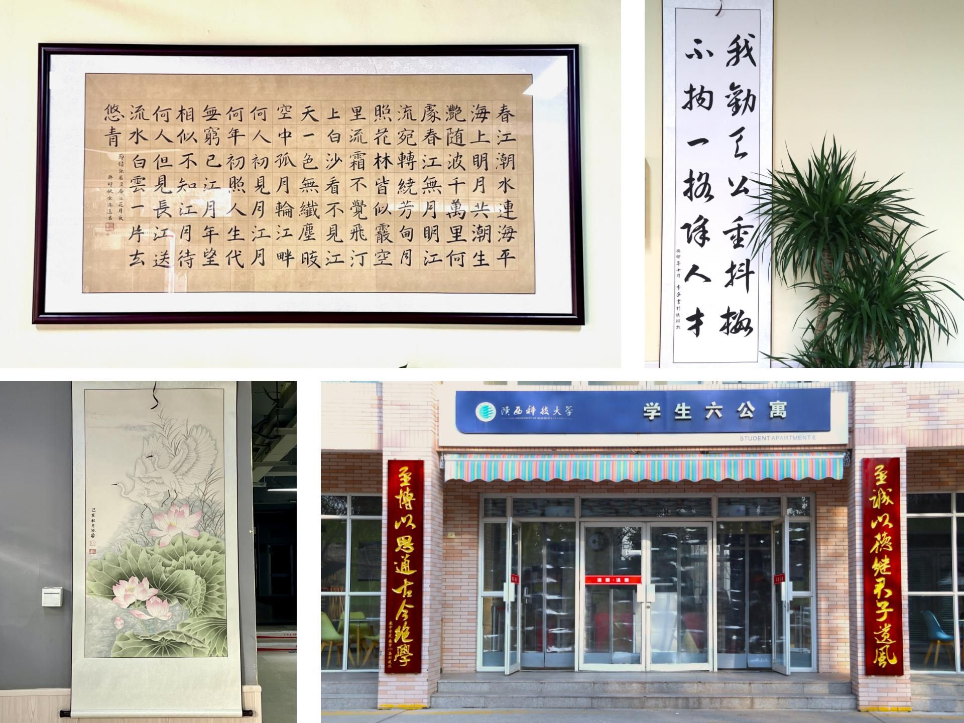 “诚心”聚焦学生关切,共建共享书香社区。11月,德赢官网成功举办了首届学生社区书画作品征集活动,吸引了在校学生、教职员工、学生家属参与。活动征集了书法、绘画、摄影和公寓对联共计282件作品。经专家评审后,遴选了22件优秀作品装裱布展在16个学生公寓内。数学与数据科学学院数学235班温钊同学提供的六公寓对联“至博以思通古今绝学,至诚以德继君子遗风”生动传承德赢官网校训精神。一件件书画作品,尽显学生对学校的热爱,对公寓建设的热情,他们是学生社区的“建设者”,是学生社区的“主人翁”。