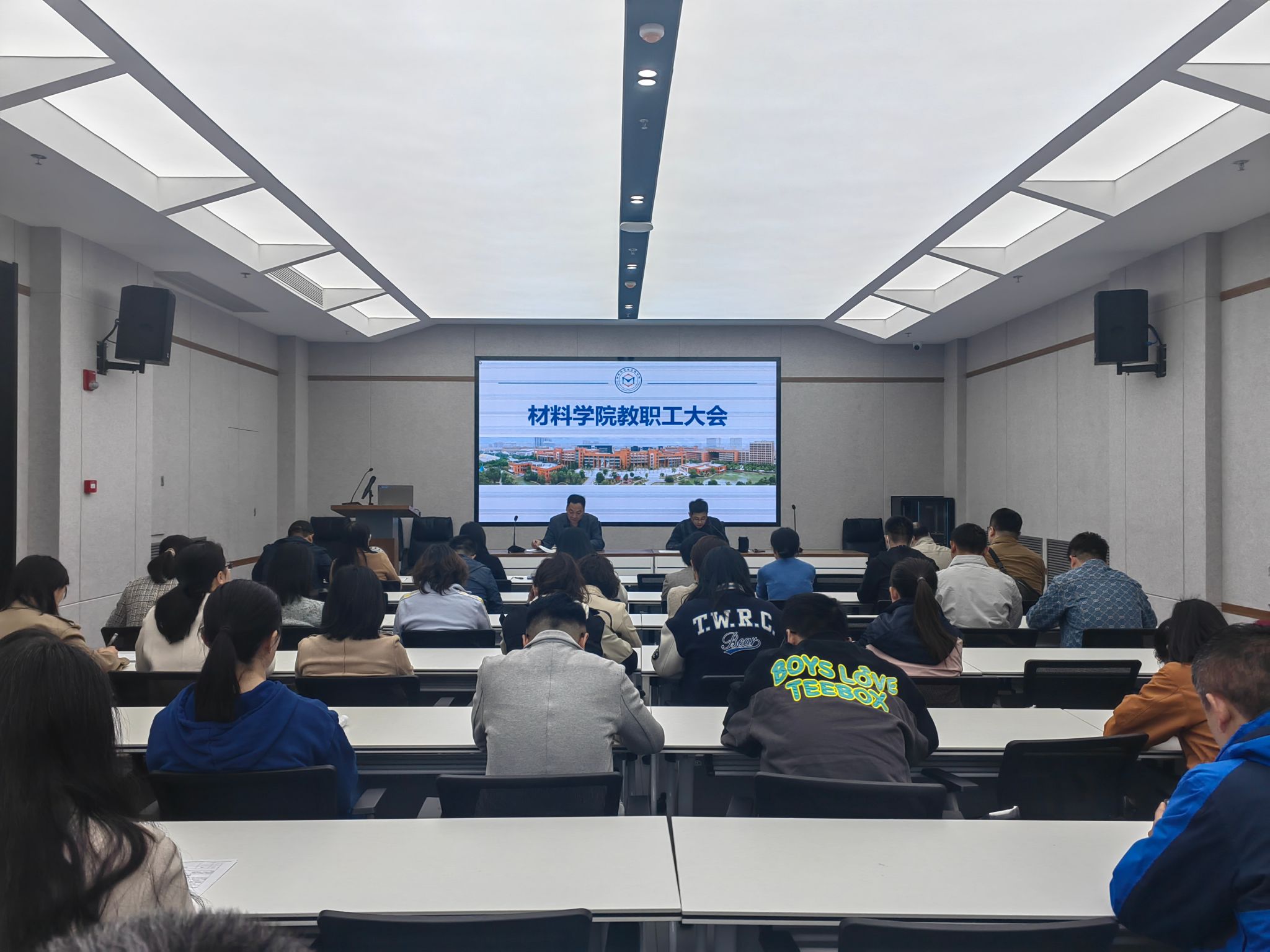 3月22日,材料科学与工程学院(文物保护科学与技术学院)召开新学期教职工大会,学习了习近平总书记在全国两会上和中共中央政治局第十二次集体学习时的重要讲话精神,传达了学校第三次党代会和七届三次教代会精神,对学院2024年度重点工作进行了安排部署和任务分解。