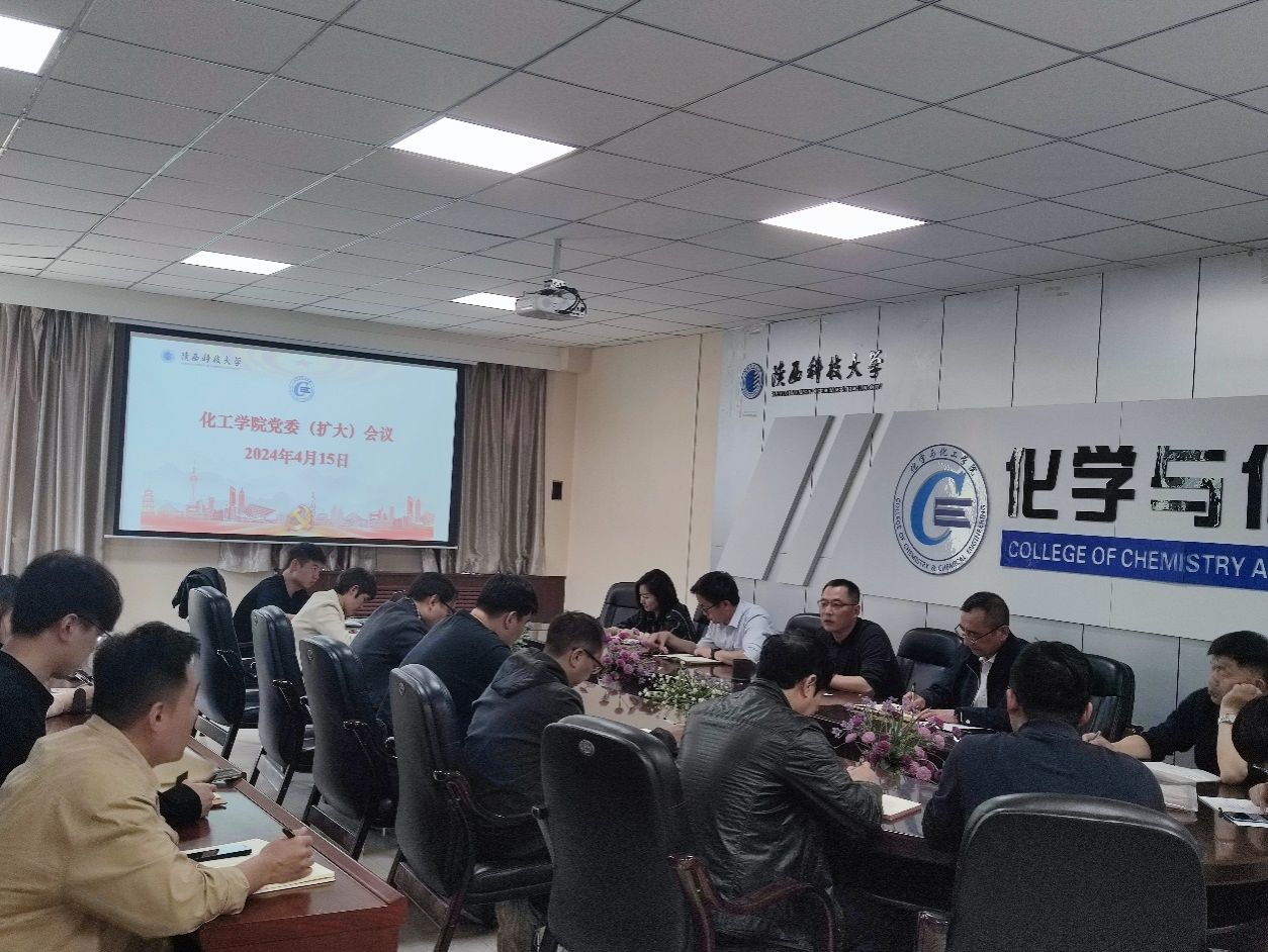 4月15日,化工学院召开党委(扩大)会议,认真学习习近平总书记关于党纪学习教育的重要讲话和重要指示精神,传达学习中央和省委党的建设工作领导小组会议精神,贯彻落实学校党委(扩大)会议和全面从严治党会议精神,动员部署学院党纪学习教育工作。学院班子成员、党委委员、纪委委员、全体党支部书记、系(室)主任和师生代表参会,会议由党委书记张岩主持。