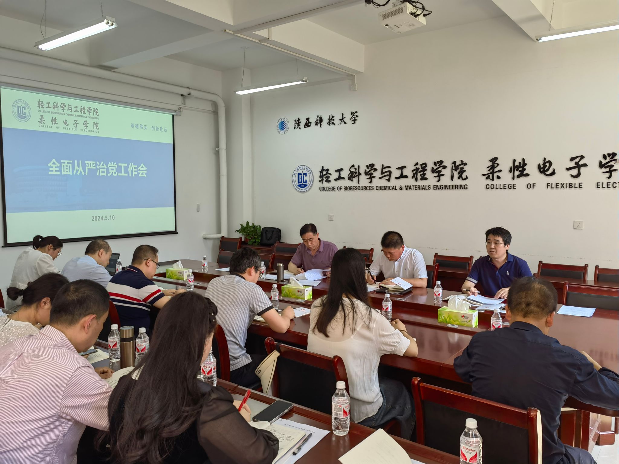 5月10日下午,轻工科学与工程学院(柔性电子学院)党委召开全面从严治党工作会议,学院党政班子成员、党委委员、纪委委员、全体党支部书记参加会议。会议由学院党委书记李新平主持。