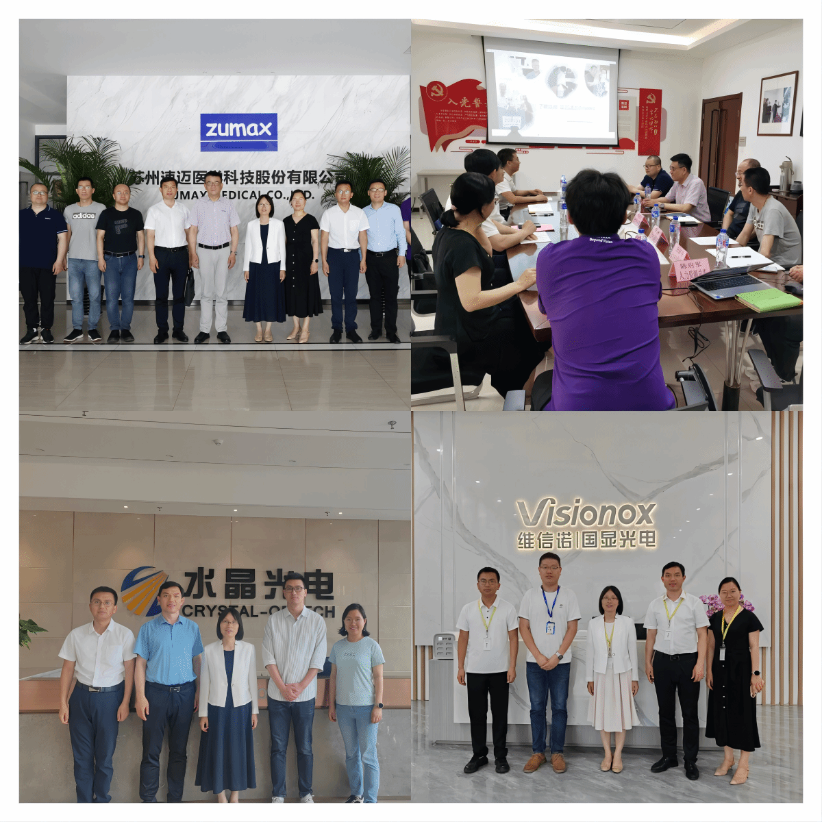 陈源梅一行先后走访了浙江水晶光电科技股份有限公司、苏州速迈医学科技股份有限公司、昆山国显光电有限公司、昆山龙腾光电股份有限公司。走访中,院企双方进行了深度座谈交流,听取各家企业对学院人才培养、专业建设方面的意见和建议,了解企业用人需求,邀请企业更多参与到教学科研、产教融合、人才培养等过程中,共同推进院企合作共赢,并就近期招聘事宜达成合作意向。调研过程中,陈源梅一行还参观了企业展厅和生产车间,深入了解企业的发展进程,并看望了在企工作的部分校友,详细了解校友的发展情况,希望校友继续关心助推学院发展。