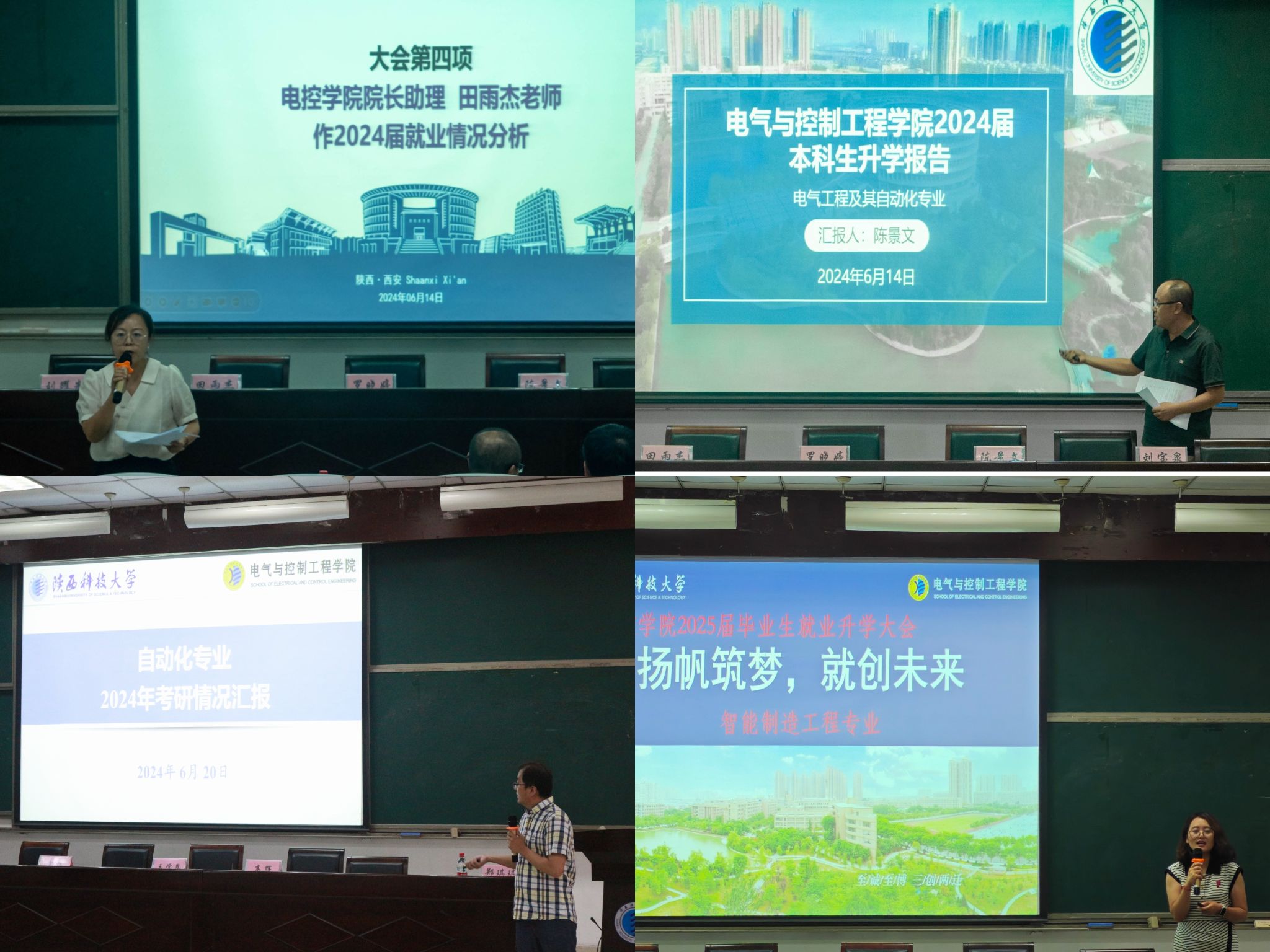 为全面落实学校就业工作部署,提前谋划、扎实做好2025届学生就业指导与服务工作,电气与控制工程学院于6月14日、6月21日在三号教学楼101报告厅分专业举行2025届就业升学系列动员大会。校学生就业指导中心就业创业指导部主任罗晓婷、电控学院院长助理田雨杰、电气工程系主任陈景文、自动化系主任王学恩、智能制造系主任曹晓倩,以及系部骨干教师代表出席会议,2024届电气优秀学生代表及2025届全体学生参会,会议由辅导员郑琪琪主持。