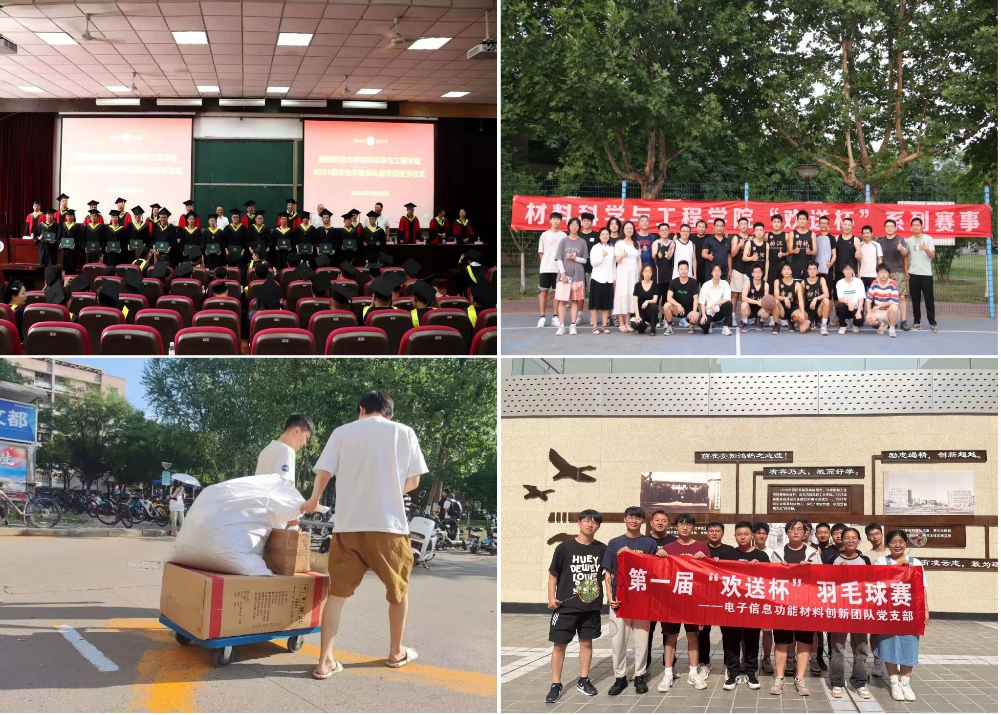 用情做好有序离校,细化活动方案,营造良好氛围。学院举办“欢送杯”师生系列球赛,在运动中增进师生之间情感联系,为毕业生送上别样祝福。开展“最初的美好”宿舍清扫活动,加强毕业生劳动教育,留下一间整洁的宿舍和最美的回忆。开放“好物传递跳蚤市场”,做到物尽其用,传递同学情谊。邀请毕业生撰写“三行情书”,用文字表达毕业生对母校、老师、同学的感恩之心和不舍之情。举办材料学院2024届毕业典礼,夯实毕业生“以校为荣、以院为家”的精神烙印,送上对毕业生最真挚的祝愿,增强毕业生爱党爱国、爱校荣校的情怀。