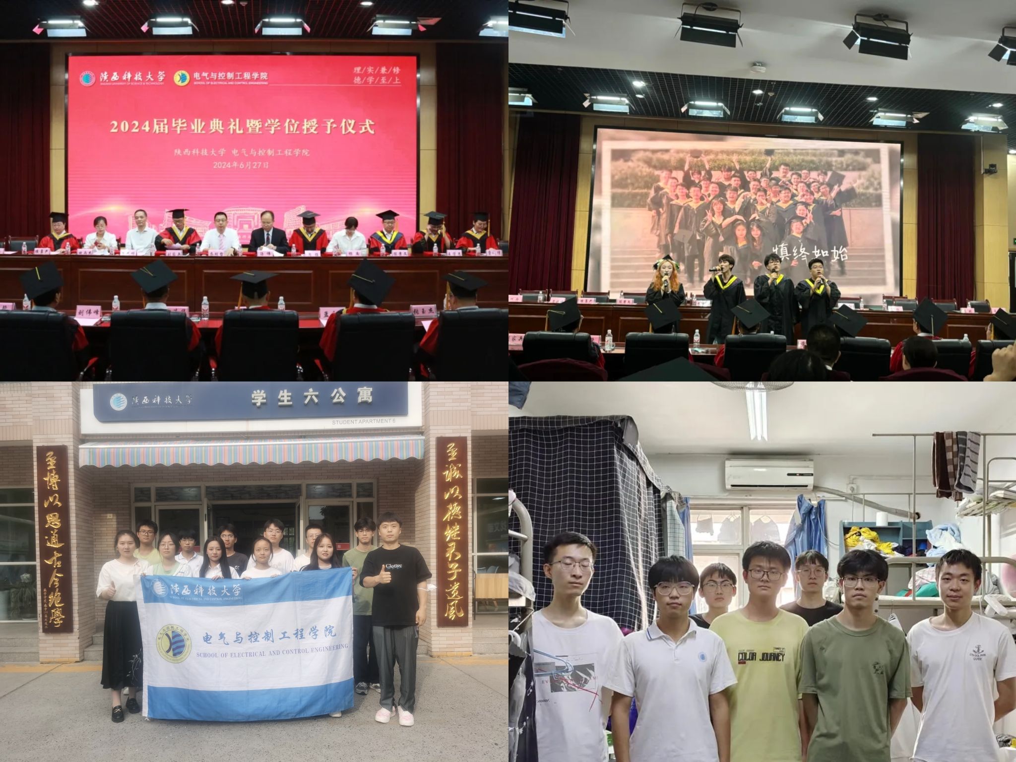学院举办2024届毕业典礼暨学位授予仪式,发布《记念》主题毕业MV,开展“星控璀璨”优秀学生风采展、“我的求学路”优秀毕业生论文致谢征集、“纸短情长”感念师恩明信片、“你的吐槽我来听”意见征集、“书脉相承”图书捐赠、“宿说青春”毕业季清扫等特色毕业季活动,为毕业生留下电控学子独家记忆,营造安全健康、文明有序、积极向上的毕业离校氛围。